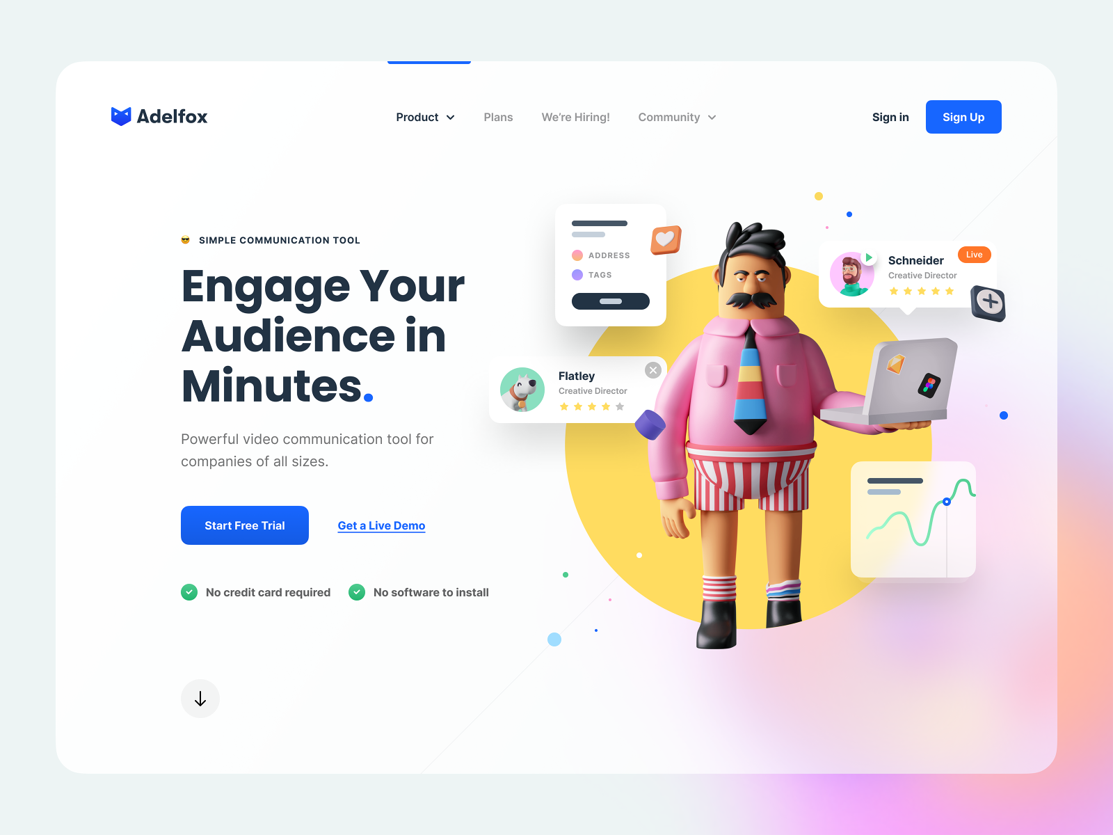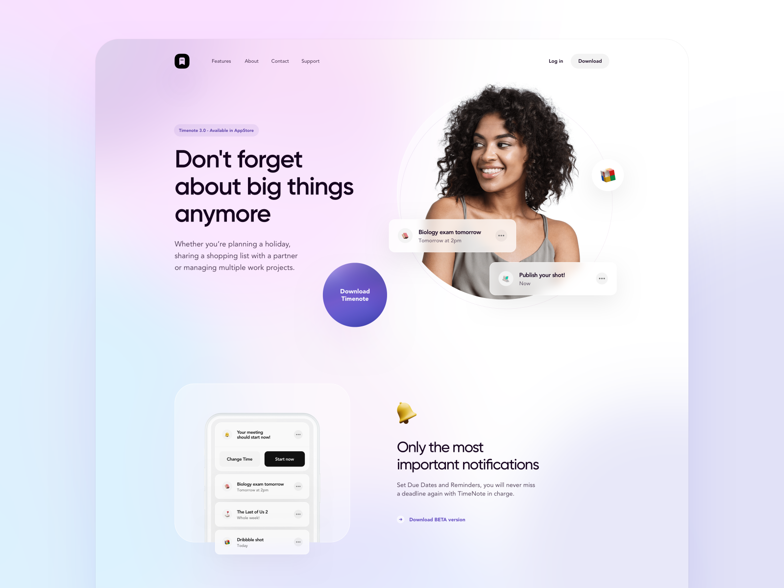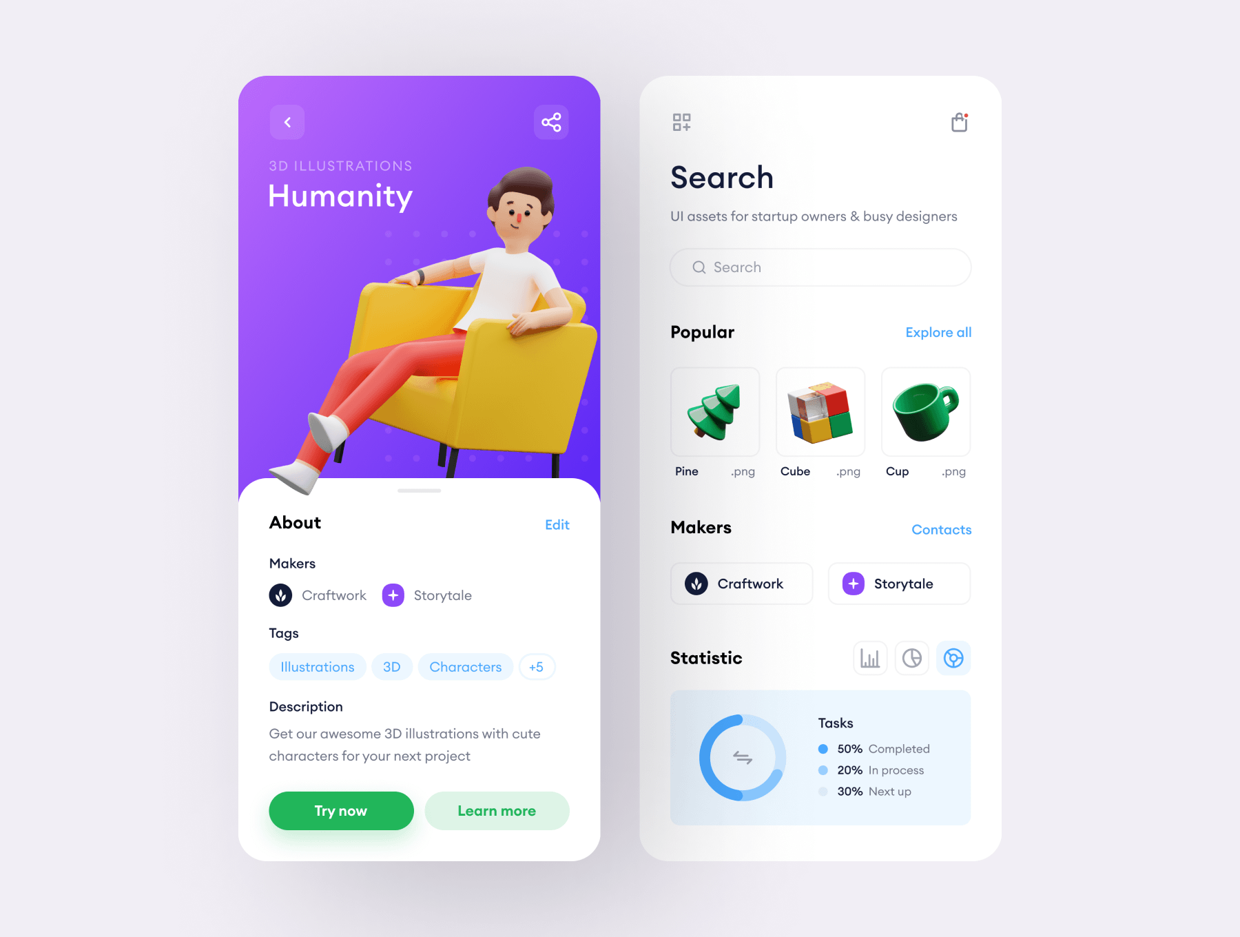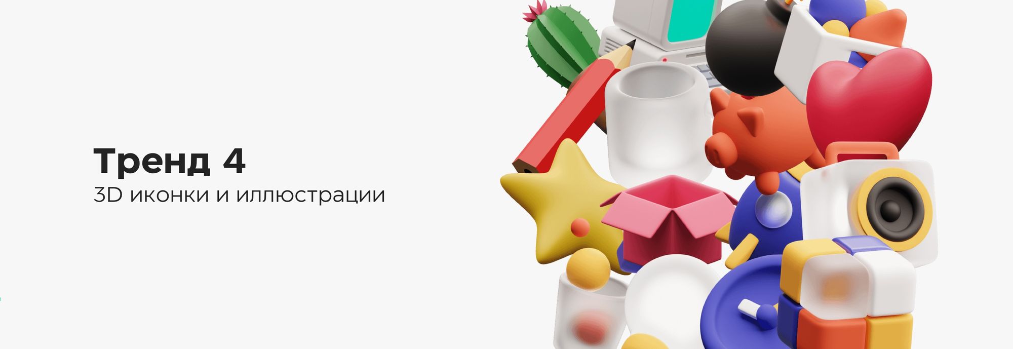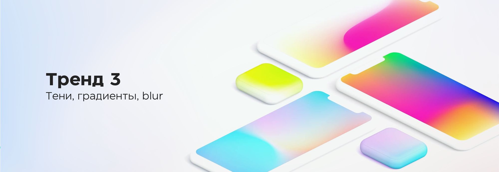 Тренд с тенями и градиентами был и ранее, но и по сей день остается актуальным. Единственное, что в нем поменялось - это появление большей воздушности, легкости и объема. Все это миксуется с пастельными градиентами и новыми трендовыми 3d иконками. По сути это тот же самый минимализм, только более объемный.