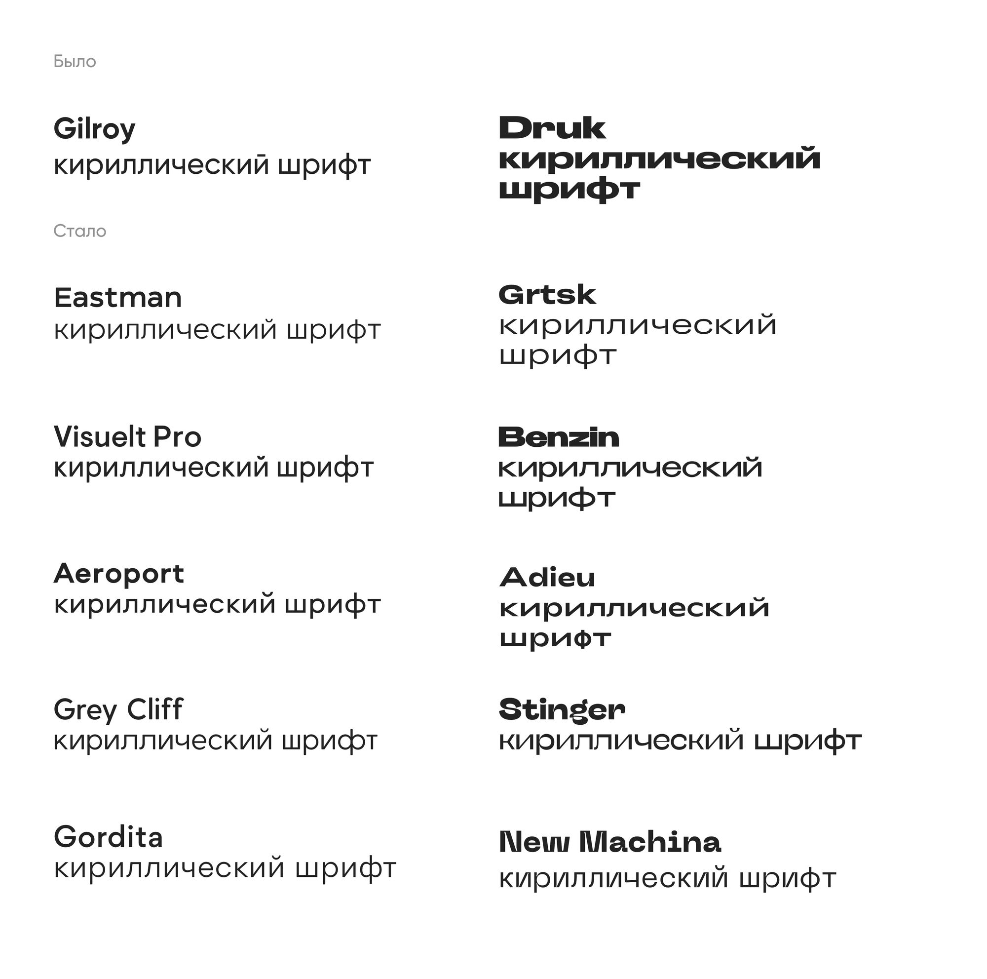 Раньше в основном все использовали Gilroy и Druk. Конечно, было и множество других шрифтов, таких как Bebas Neue и другие. Но реальное разнообразие и разлом всех стереотипов о шрифтах пришелся на середину и конец 2020 года. Речь идет именно о том, когда шрифты вышли в массы и их начали использовать крупные компании: в рекламе, собственном digital, ребрендинге и т.д.