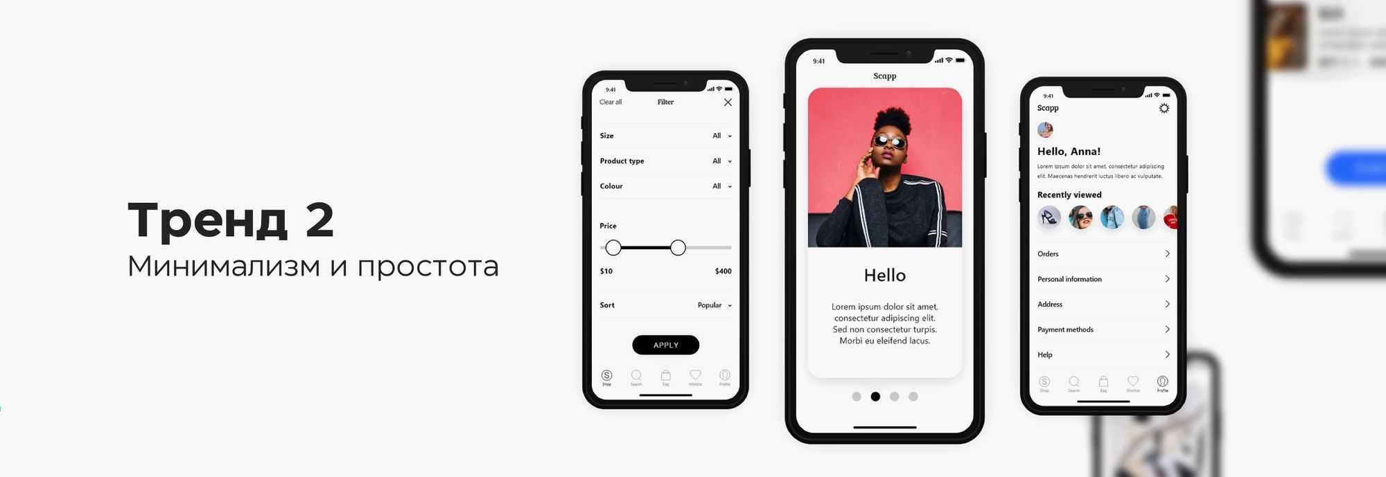 2021 год это развитие 3d графики, иллюстрации, анимации, шрифтового разнообразия. UI уходит в минимализм, легкость и простоту. Особое внимание уделяется деталям. Интерфейс становится все менее заметным и ненавязчивым. Графический дизайн становится все более дерзким, смелым, абсурдным, с нотками брутализма и антидизайна.