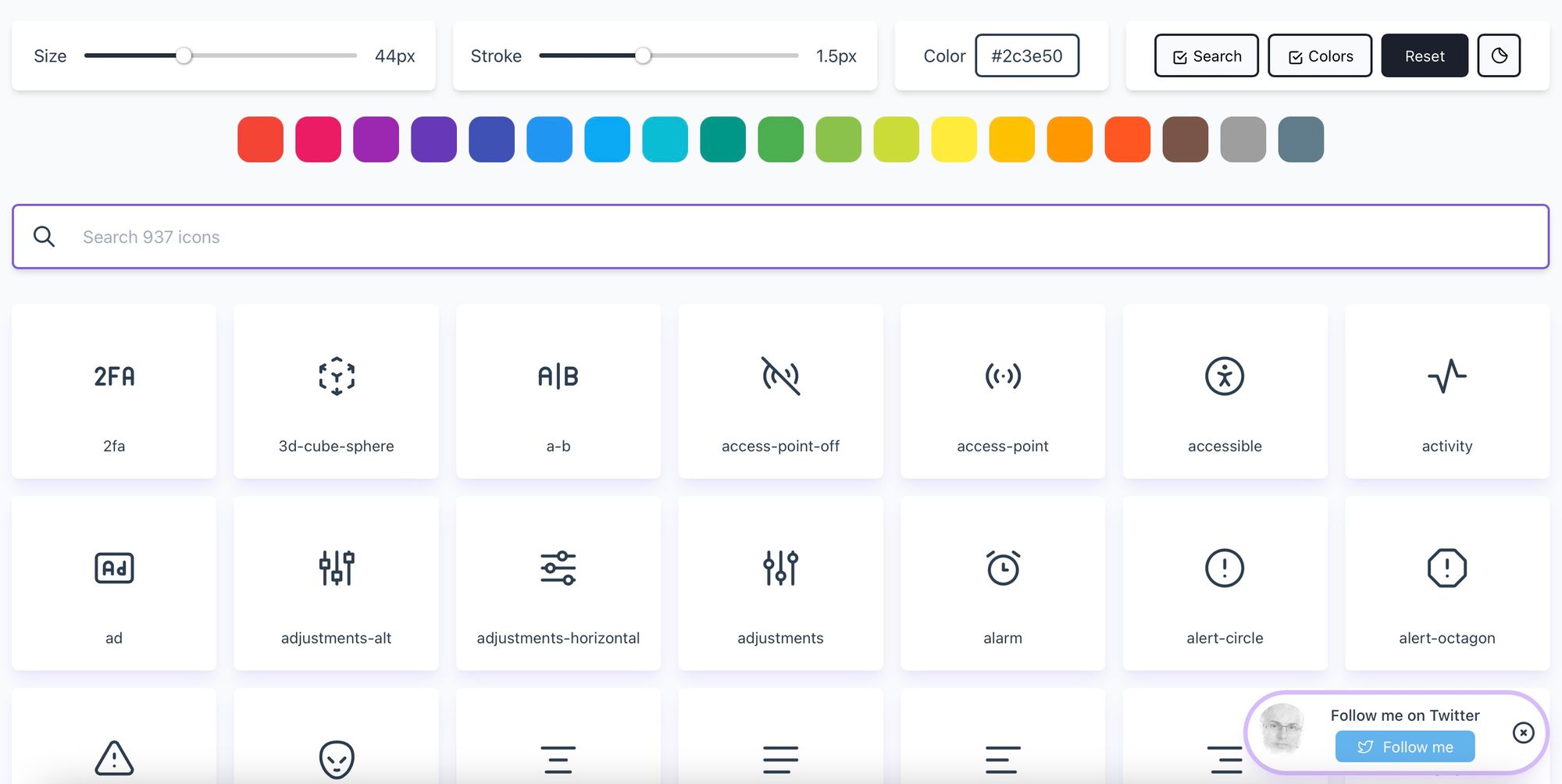 Tabler Icons — 550 настраиваемых бесплатных SVG иконок.