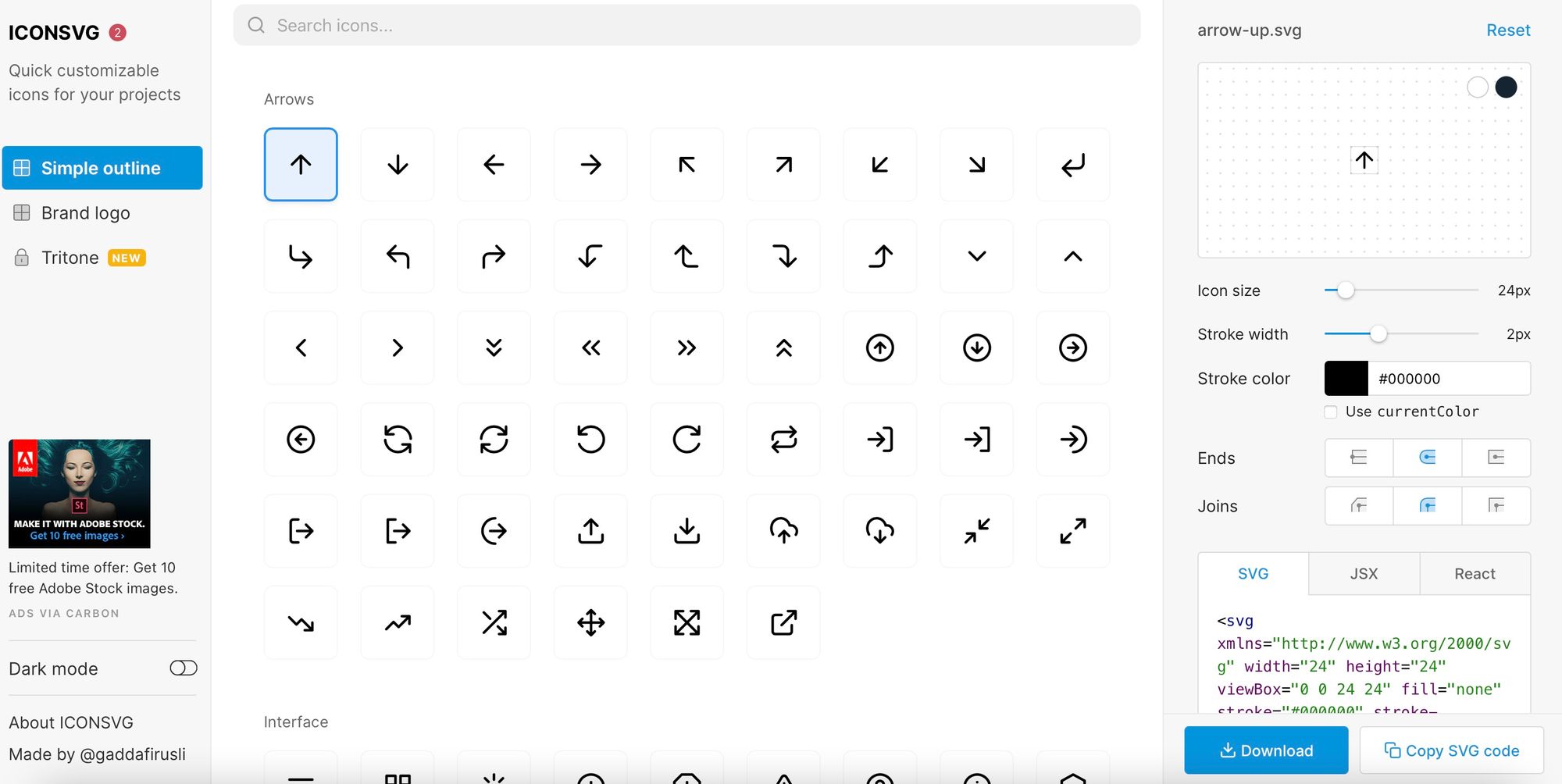 ICONSVG — инструмент, упрощающий процесс поиска и создания иконок SVG для вашего проекта.