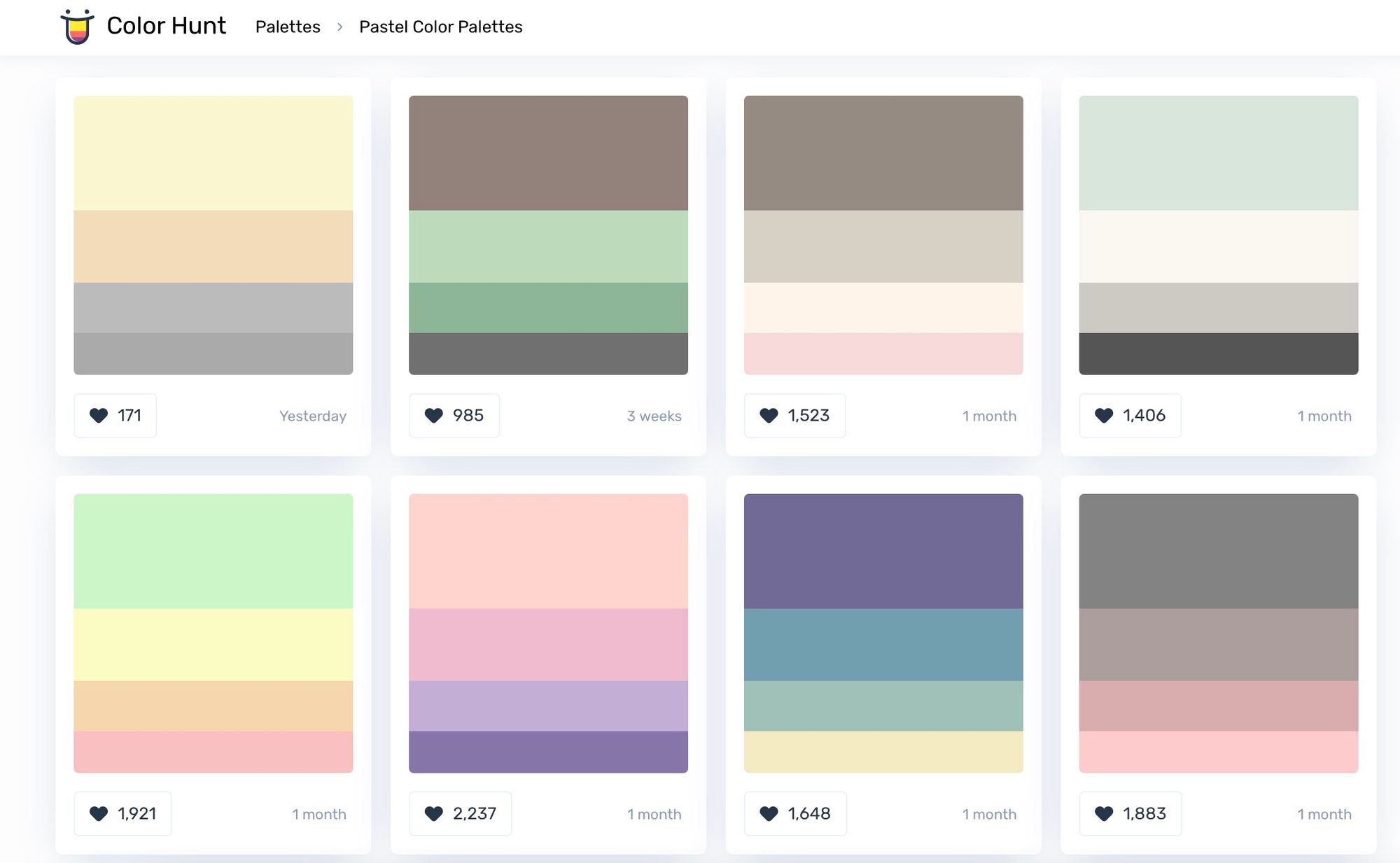 Но если вы не знаете какие цвета подобрать для своего проекта, можно обратиться за помощью к Color Hunt