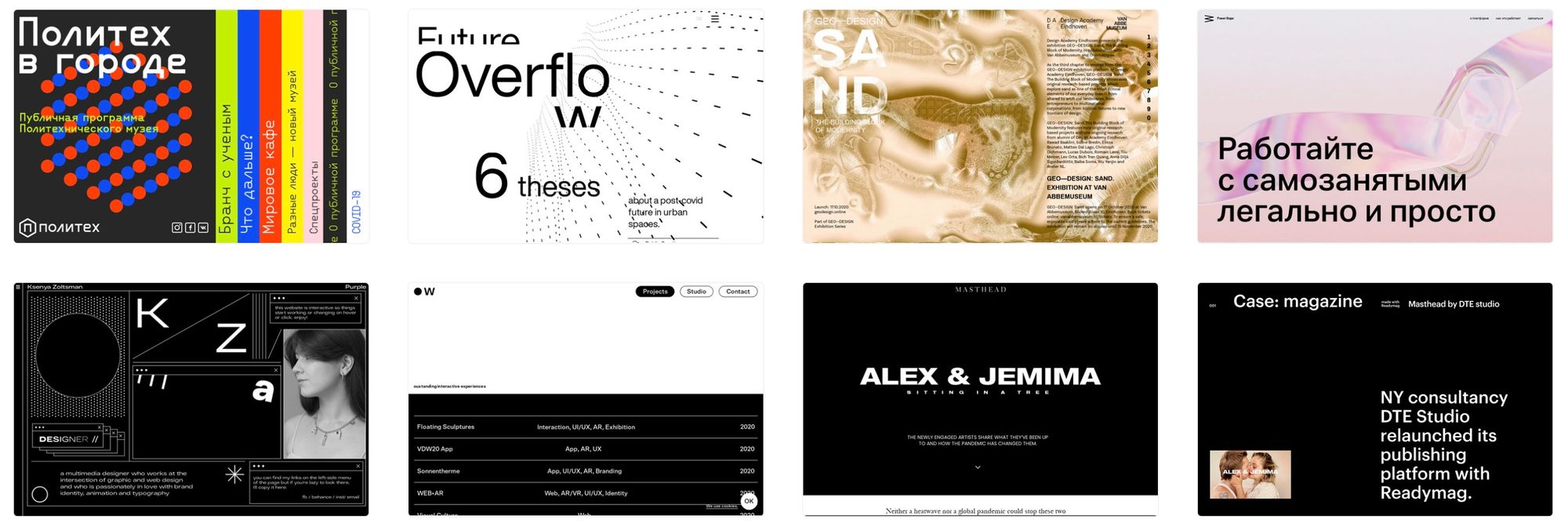 На этом сайте вы найдете лучшие дизайнерские проекты использующие кириллицу.