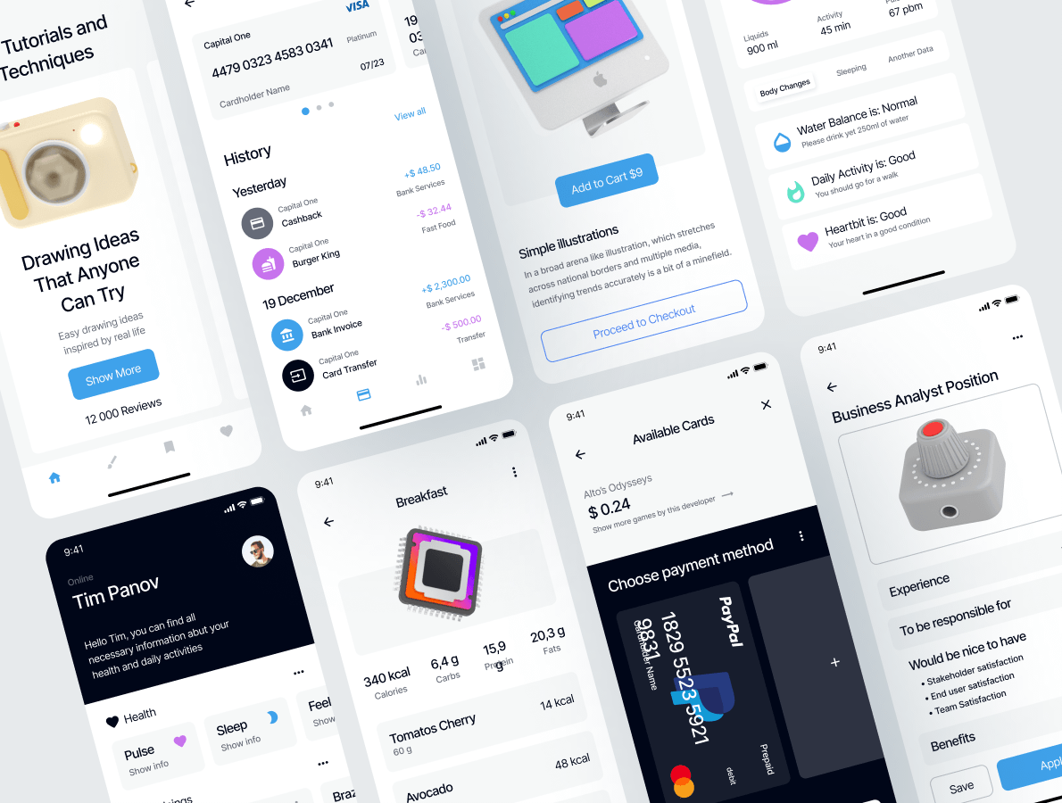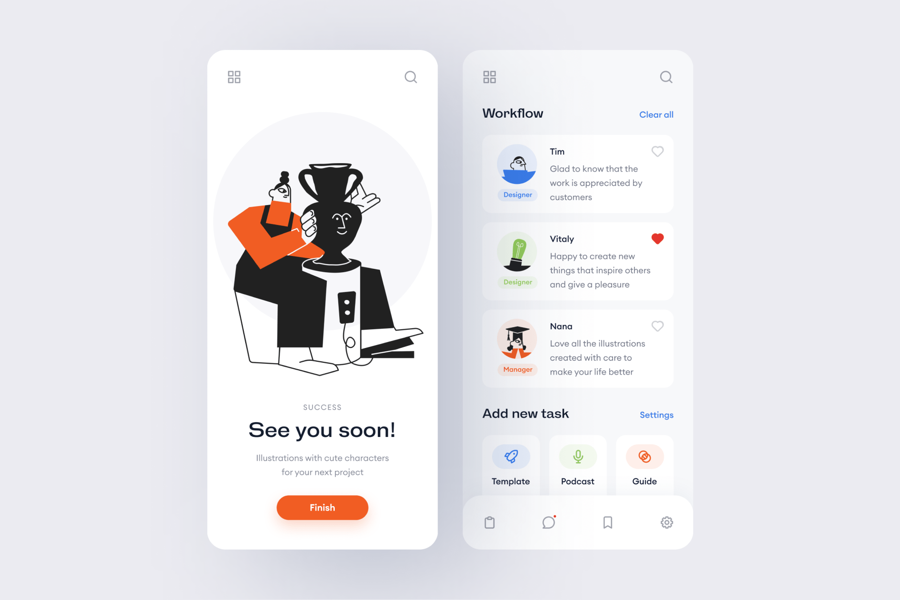 💡 Совет: Для более продуктивной работы, можете пробовать создавать макеты изначально в черно-белых цветах и только потом добавлять в них цвет. Так вам будет проще расставлять цветовые акценты и позволит концентрироваться на деталях не отвлекаясь на цвета.