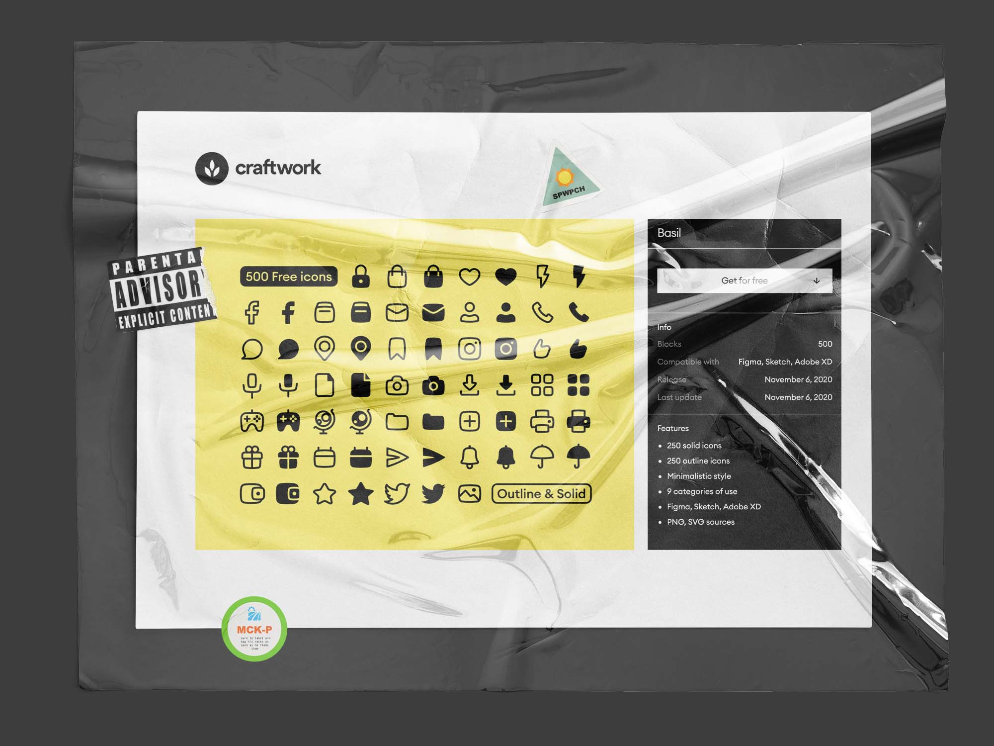 Basil — 500 бесплатных профессиональных иконок в двух стилях outline и solid, доступно для Figma, Sketch, Adobe XD.