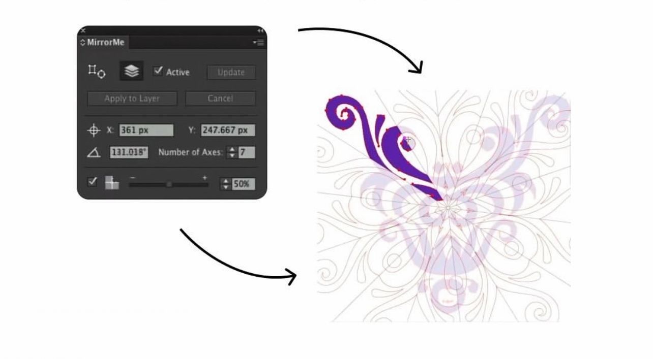Плагін для створення ефекту симетрії в режимі реального часу: дзеркальне відбивання наявної ілюстрації по одній або декільком осям, що відбивають. В результаті виходять ну дуже круті візерунки.