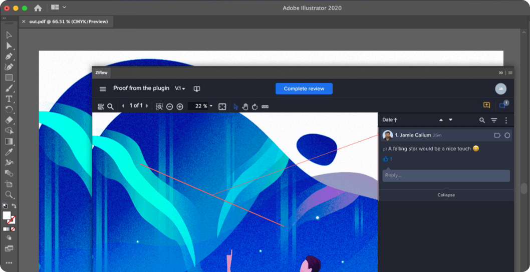 Тепер дизайнери мають можливість коментувати та ділитися своїми творчими роботами в Illustrator. Раніше командам доводилося виконувати додаткові дії щодо експорту, завантаження та відправлення електронною поштою своїх проєктів, тепер все це можна зробити за допомогою одного плагіна.