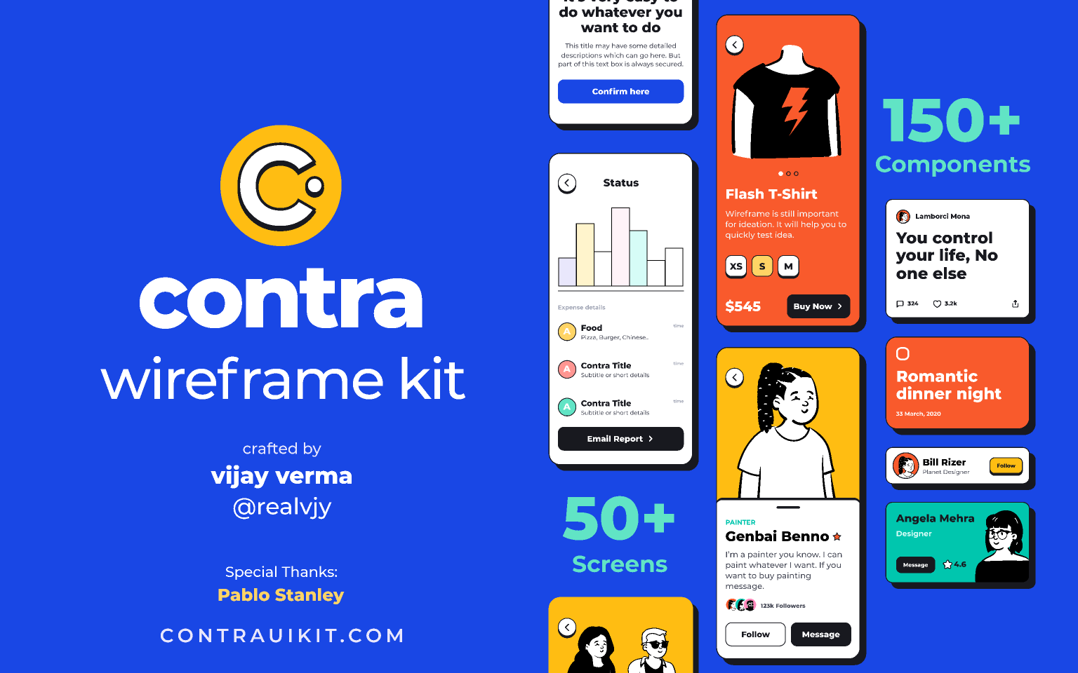 Це стартовий набір каркасів для швидкого проектування та прототипування ваших ідей. Його бібліотека містить понад 150+ компонентів та 50+ готових до використання мобільних екранів. Ви також можете легко створювати нові компоненти та екрани за допомогою посібника зі стилю.