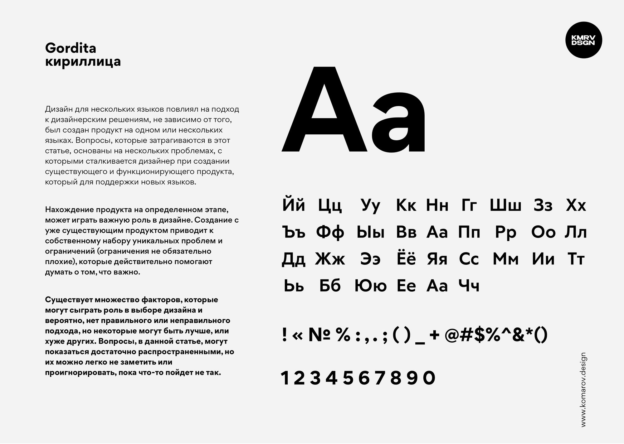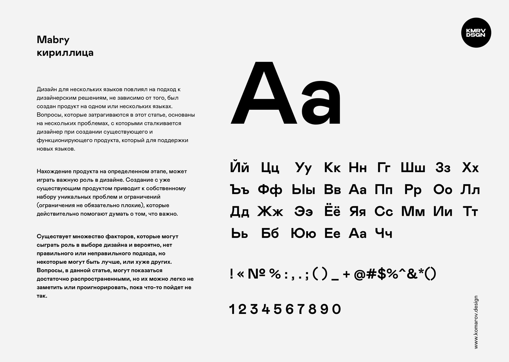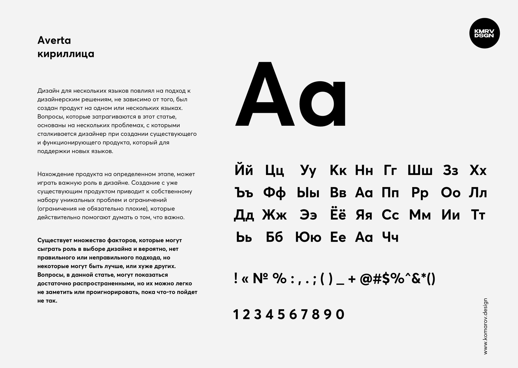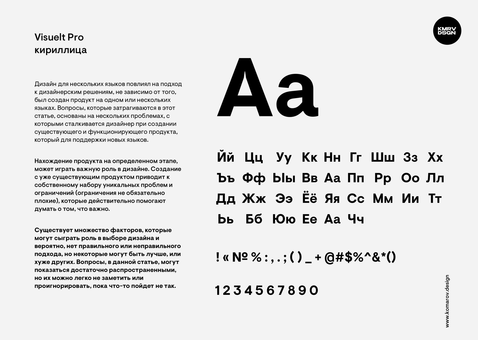 В этом шрифте мне очень нравится как выглядят крупные заголовки. Кстати, к созданию этого шрифта я даже немного причастен. Мне очень понравился этот шрифт, но после покупки, оказалось, что там есть проблемы с некоторыми кириллическими буквами. Они были сделаны неправильно. Поправили вместе с издателями кириллицу и теперь он полностью готов к использованию. Мой фаворит 2020 года.