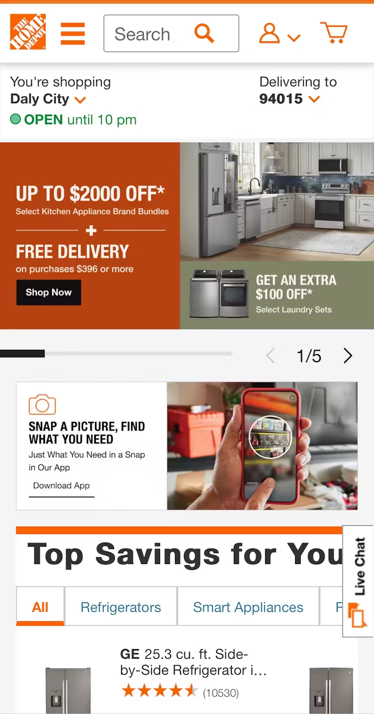👍🏻 Зупинка автопрокручування при наведенні на карусель на головній сторінці Home Depot дозволяє користувачам ефективніше взаємодіяти з контентом.