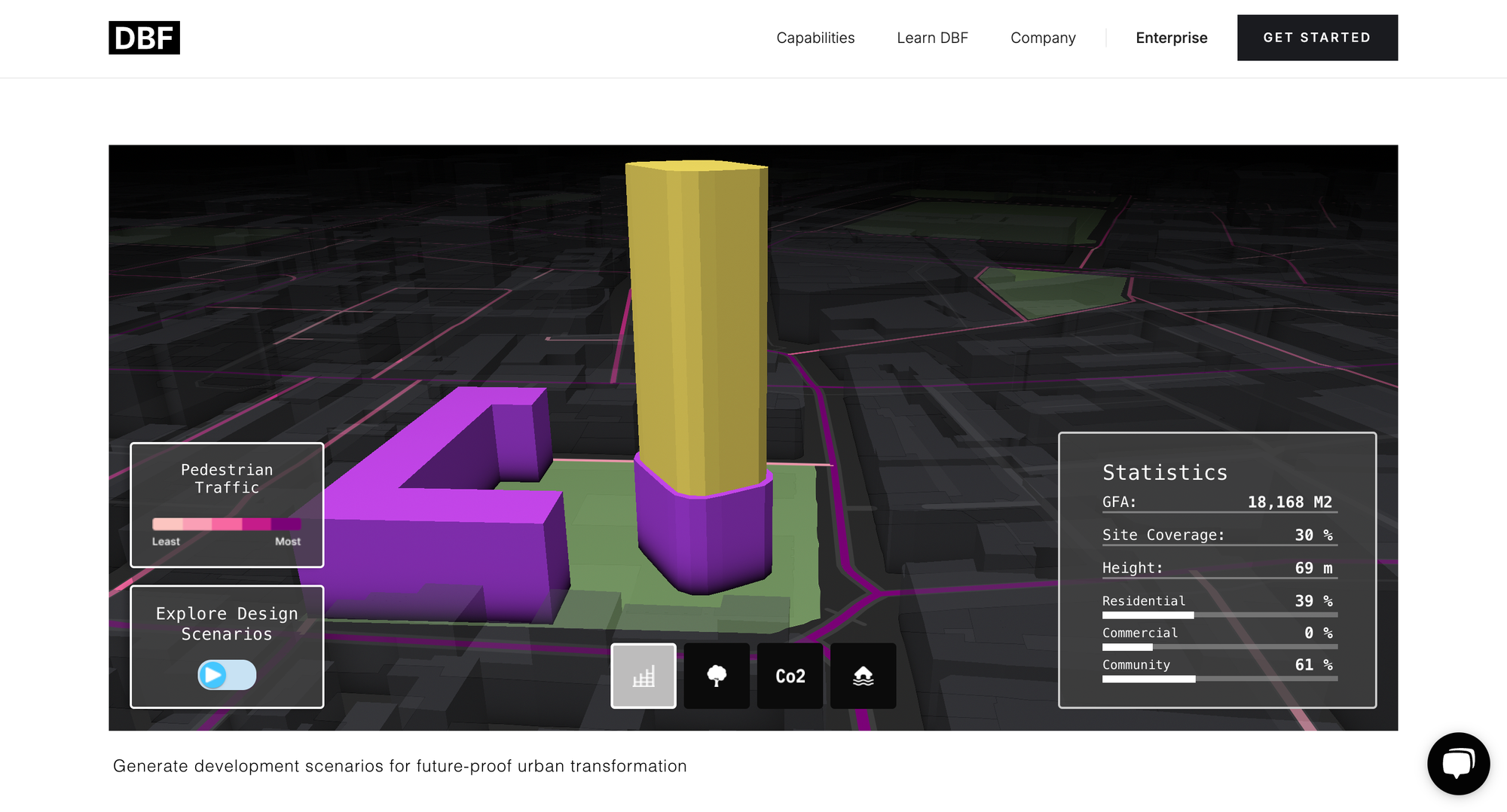 DBF Engine — це інструмент для швидкого прототипування міст, який збирає дані з відкритих джерел та створює сценарії розвитку міст, дозволяючи порівнювати різні локації.