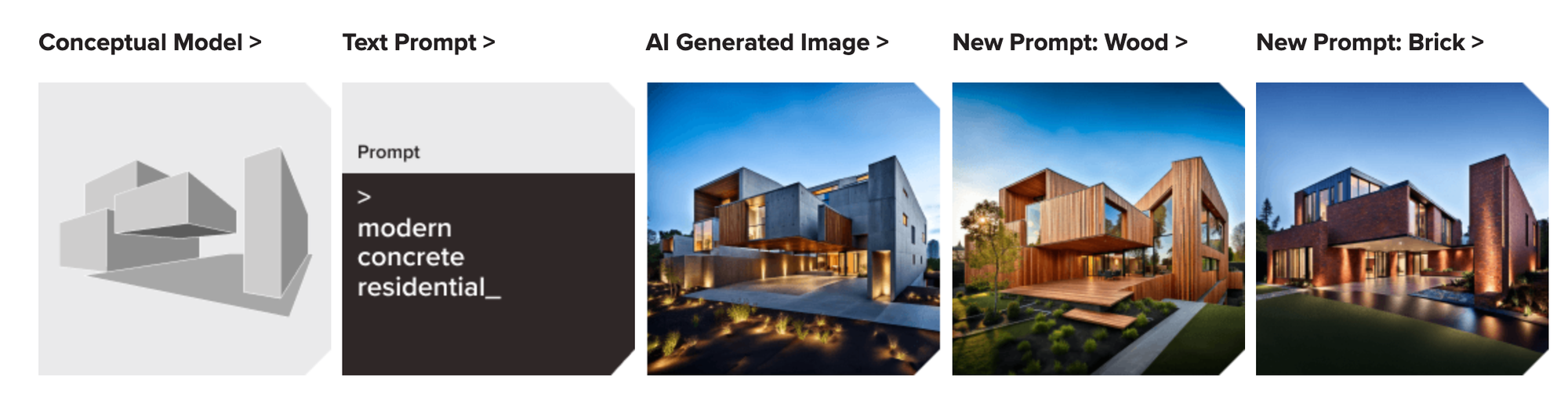 Archicad AI Visualizer — це розширення для Archicad на базі Stable Diffusion, яке дозволяє створювати детальні 3D-візуалізації на ранніх етапах проєктування. Користувач завантажує просту концептуальну картинку, задає текстовий промпт, і нейромережа генерує кілька моделей на основі цих даних.
