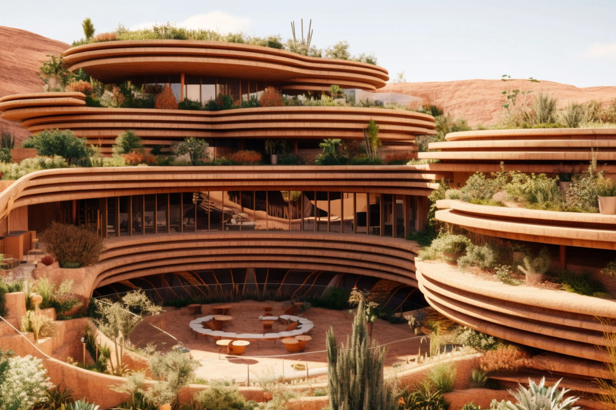 Midjourney може візуалізувати ідеї архітектора за допомогою текстового промпту в заданій стилістиці. Наприклад, він може створити кілька варіантів майбутнього проєкту для презентації замовнику або показати, як нова будівля впишеться в певний ландшафт. Цю нейромережу також можна використовувати як джерело натхнення, генеруючи зображення без чіткого технічного завдання. Важливо зауважити, що Midjourney допомагає візуалізувати концепції, а не створює точно прораховану архітектурну модель.