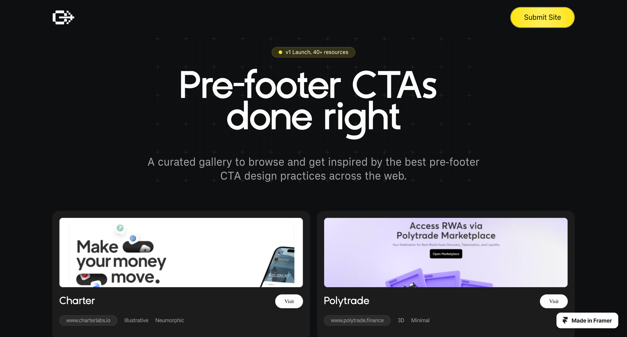 Gridddy — це галерея найкращих дизайнів закликів до дії (CTA) у передфутерній зоні сайту. Платформа надає приклади креативних і ефективних CTA, які можна адаптувати для власних проєктів.
