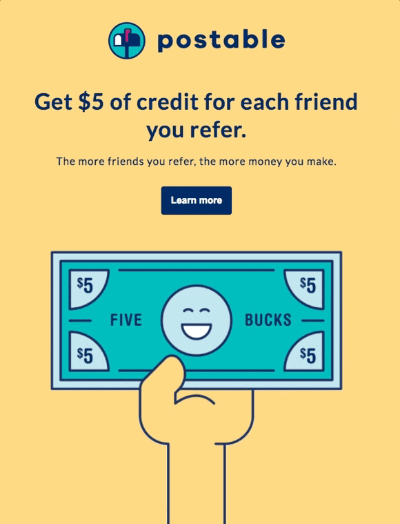 Ідеальна структура елементів. Лист має однорядковий текстовий вміст, привабливу кнопку CTA, а винагороду за рекомендацію друга включено у саму GIF, що залишає високі шанси закарбувати це в голові читача.