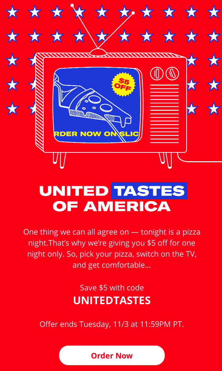 Лист від Slice сподобався з двох причин: патріотична тематика та дотепна копія електронного листа з написом «United Tastes of America».