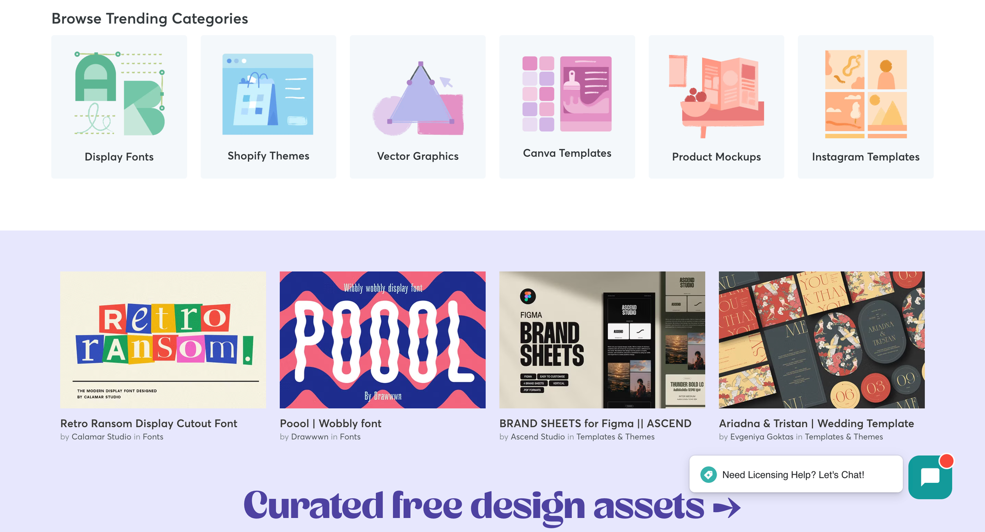 Creative Market – одне з найкращих місць для покупки високоякісних дизайнерських цифрових ресурсів, таких як шрифти, графіка, шаблони та розширення. Там представлений величезний вибір векторних зображень, хоча вони становлять лише малу частину загального контенту.