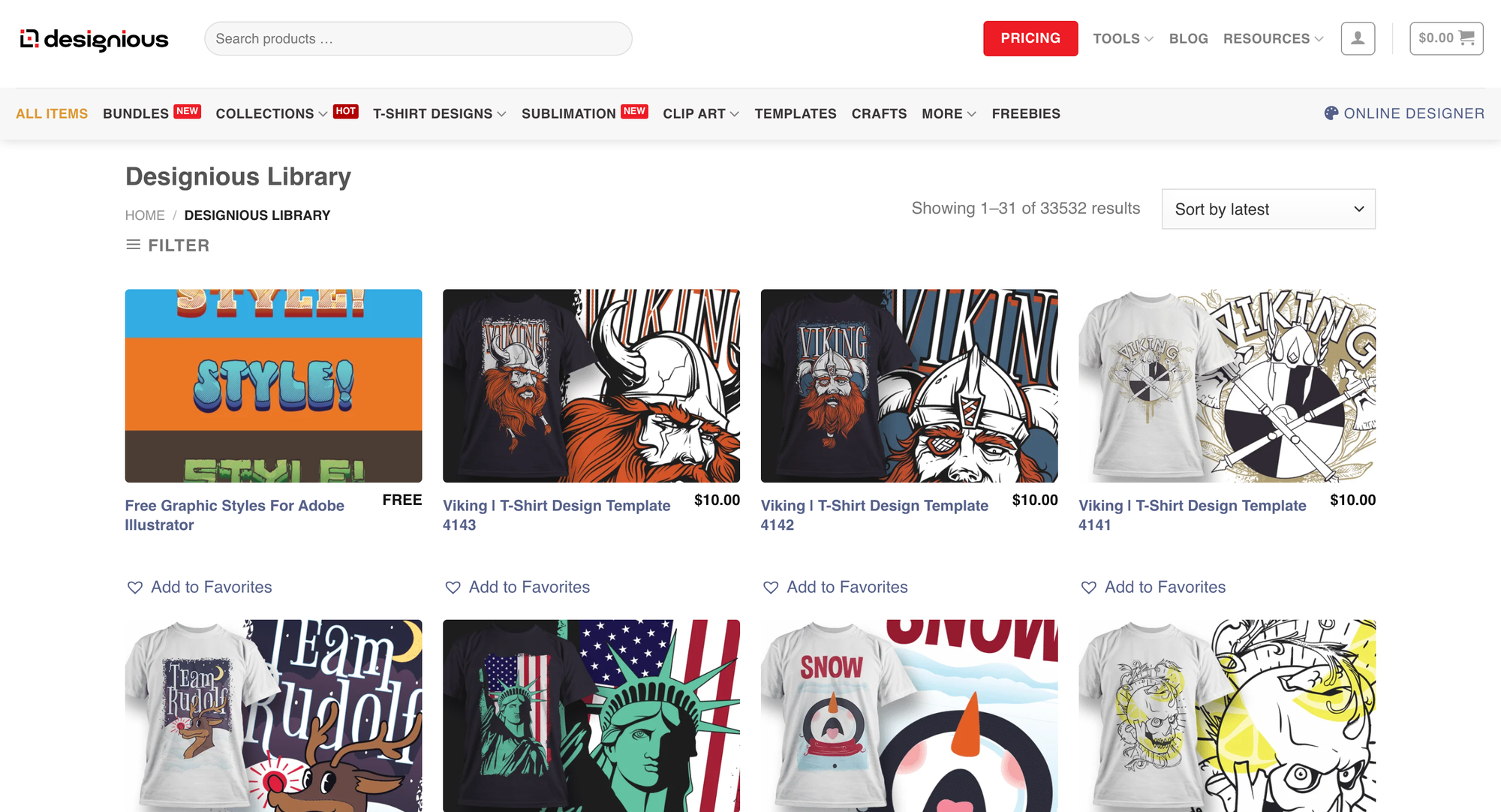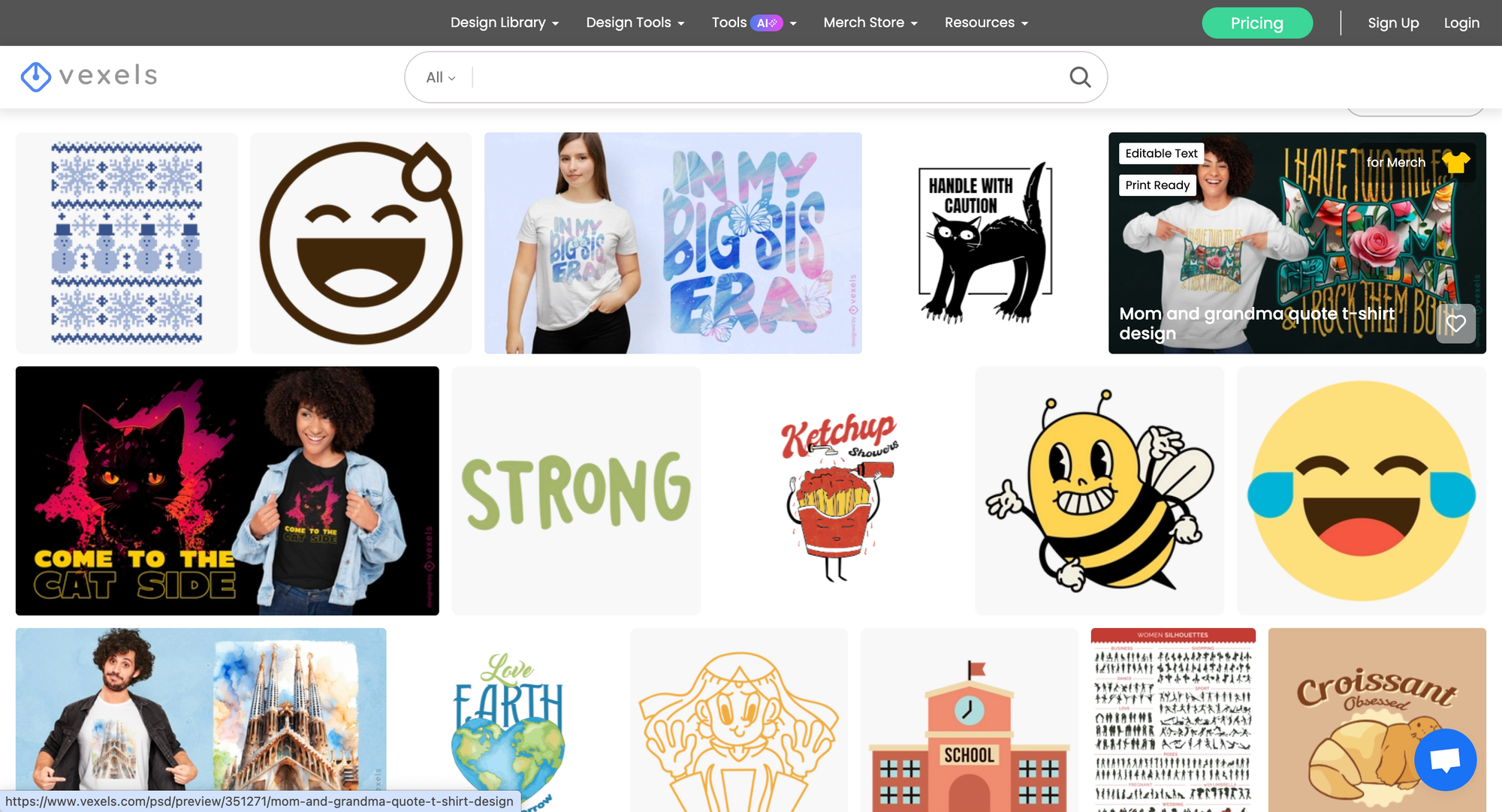 Vexels пропонує готові дизайни для товарів з фірмовим логотипом або символікою, які сумісні з Etsy, Redbubble, Merch by Amazon, Zazzle та іншими. На сайті Vexels також можна знайти тисячі векторних ілюстрацій, які можна шукати за ключовими словами та фільтрувати по ніші. Ціни починаються від $7,50 за 100 завантажень на місяць.