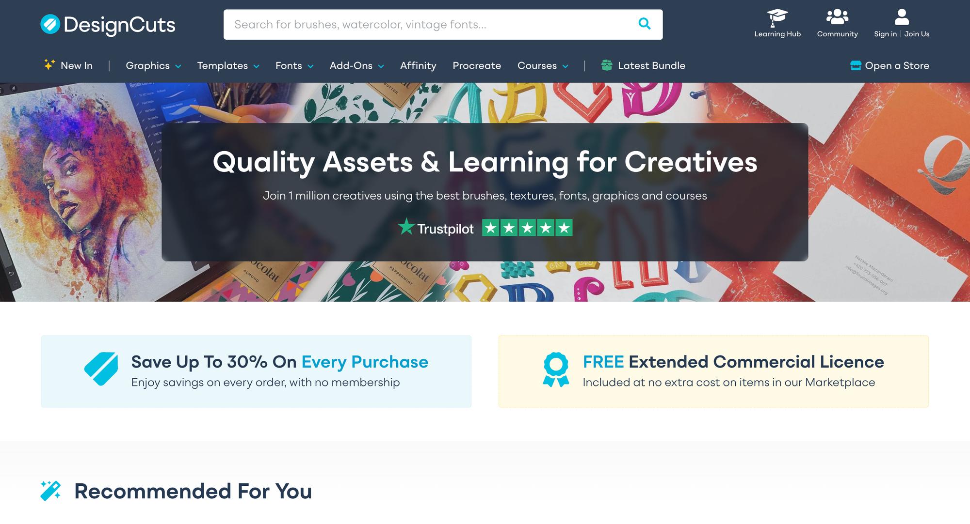 Design Cuts – це знахідка для графічних дизайнерів. Пропозиції на сайті чергуються, тому при вході на нього ви щоразу будете бачити нові продукти. Тож не зволікайте та зберігайте те, що вам подобається. Сайт Design Cuts пропонує великі знижки на набори, які охоплюють велику колекцію цифрових ресурсів. Деякі з них містять векторні ілюстрації та багато інших типів ресурсів для дизайнерів.