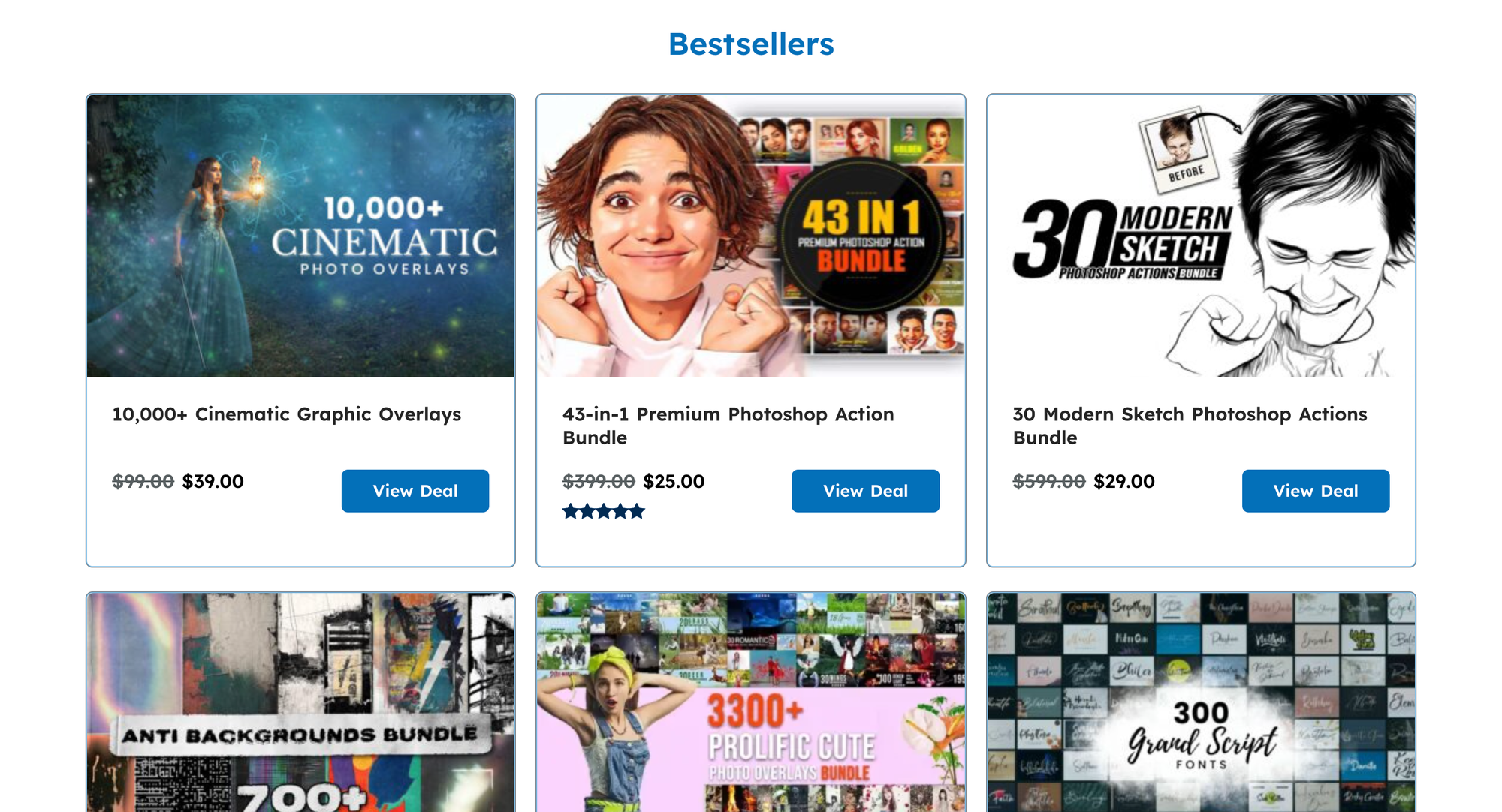 InkyDeals пропонує обмежені за часом великі знижки, які дозволяють значно заощадити. Як і в випадку з Design Cuts, багато пропозицій включають величезні пакети цифрових ресурсів. Деякі з них містять векторні зображення, ілюстрації та іконки, а також широкий вибір елементів для дизайнерів і креаторів.