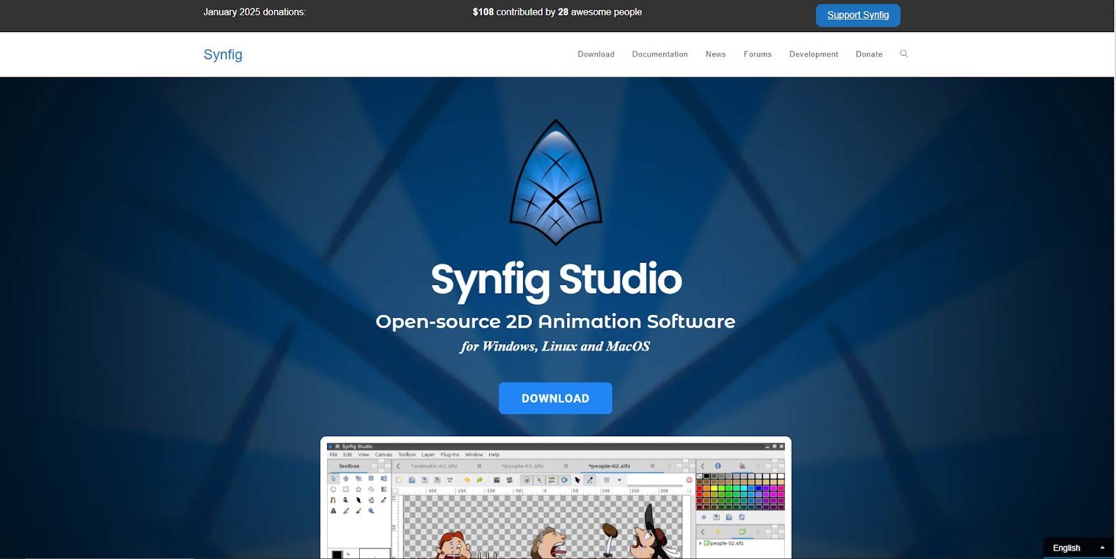 Synfig Studio — це 2D-додаток із відкритим кодом, який пропонує векторний твіннінг, скелетну анімацію та роботу з шарами. Ці функції рідко доступні для безкоштовних інструментів. Тож, рекомендую звернути увагу.