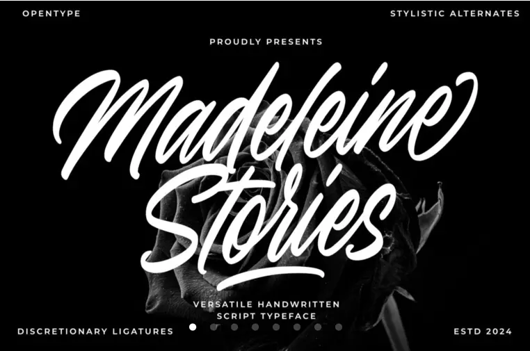 Madeleine Stories — це чудовий рукописний шрифт, який поєднує елегантність, теплоту та багатогранність. Завдяки плавним штрихам і вишуканим деталям він виглядає одночасно особисто та професійно. Ідеальний вибір для різноманітних творчих проєктів!
