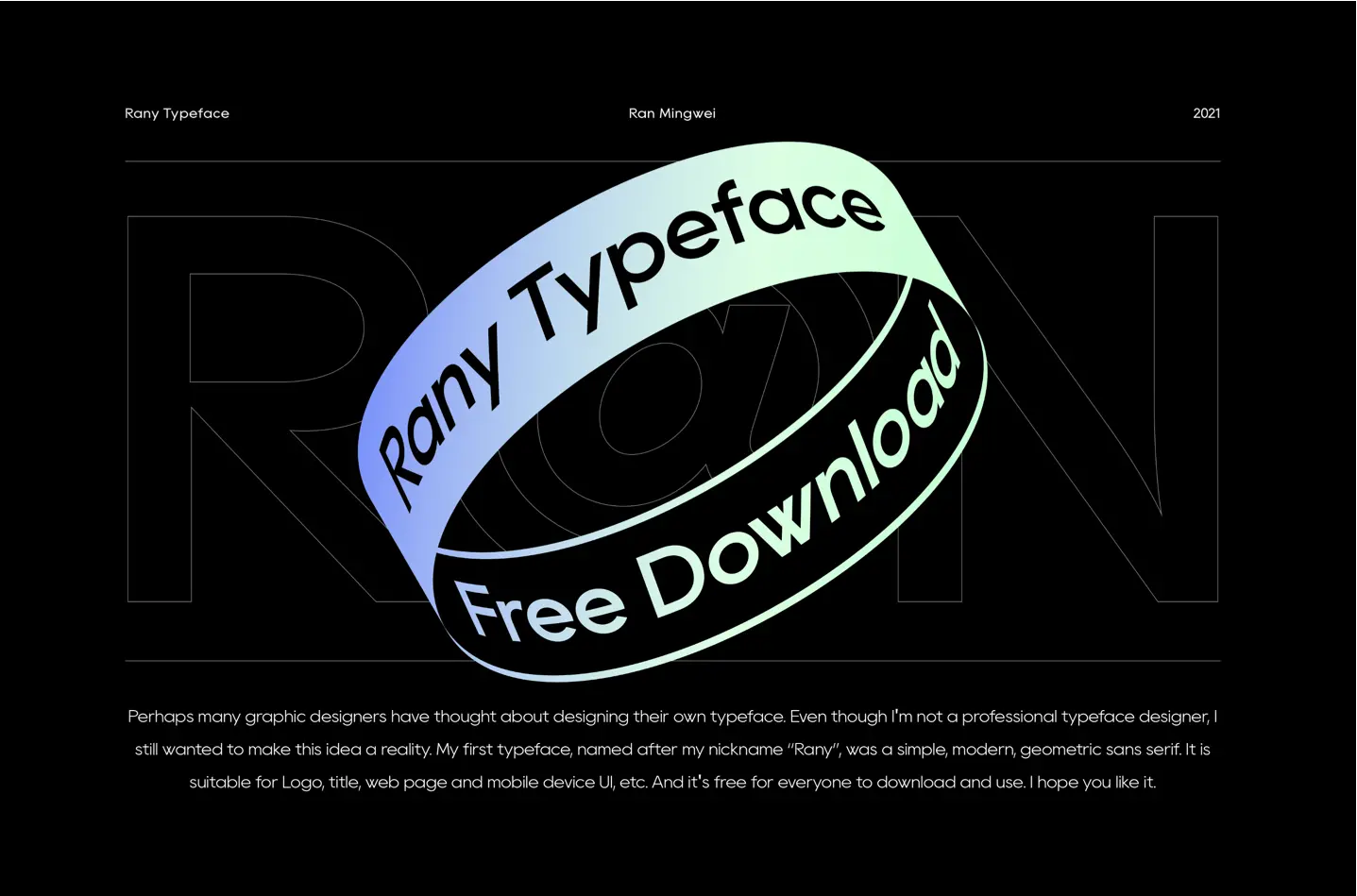 Rany — сучасний геометричний гротеск, простий та універсальний. Він чудово підходить для логотипів, заголовків, веб-сторінок і мобільних інтерфейсів. Попри те, що його креатор не є професійним шрифтовим дизайнером, він доклав максимум зусиль, щоб створити доступне та функціональне рішення для різних проєктів.