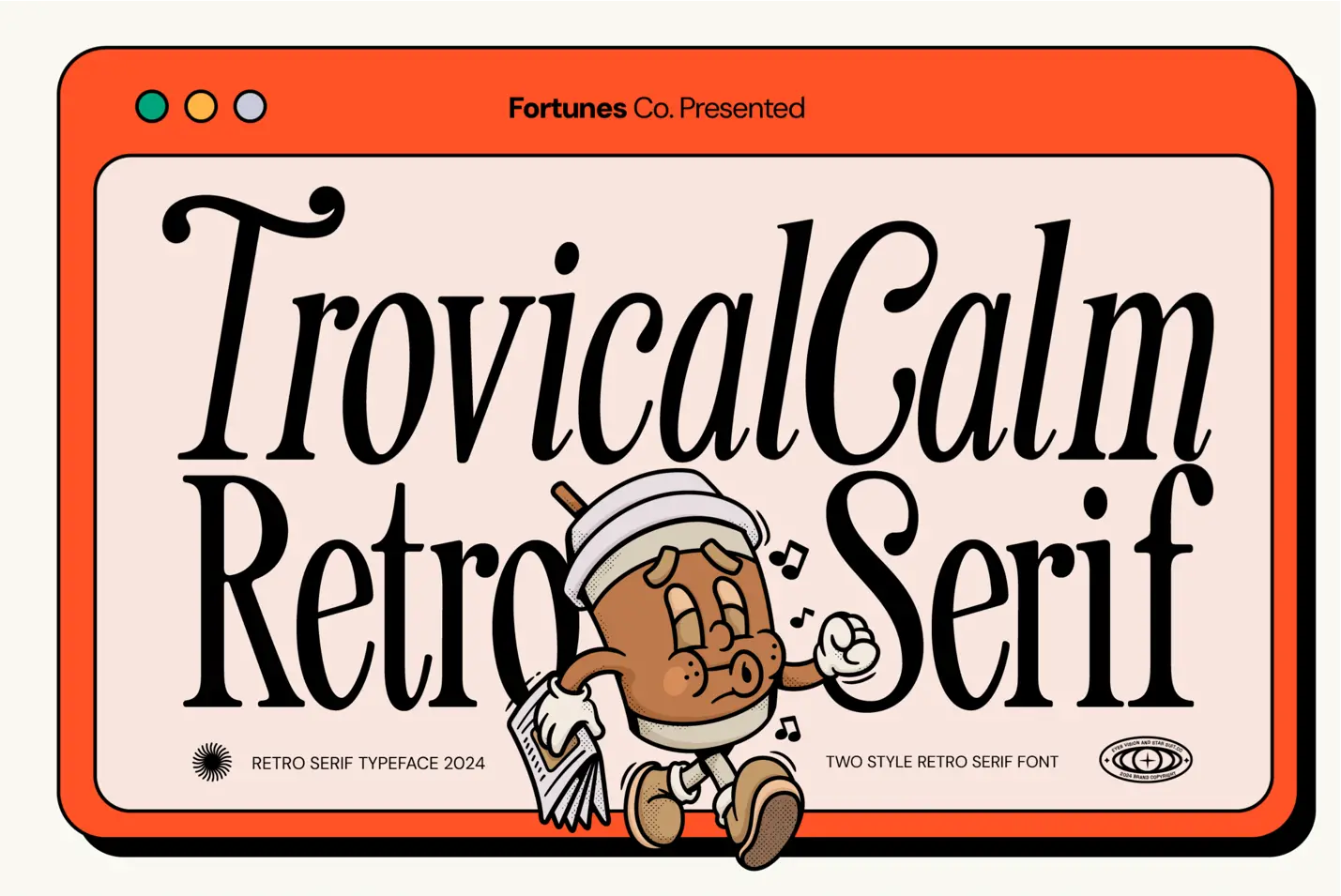 Trovical Calm Retro Serif – шрифт із засічками у стилі ретро, який є прикладом оптимального балансу між сучасним мінімалізмом та вінтажним шармом. Він досить читабельний і викликає асоціації з ефектними постерами другої половини минулого століття. Це елегантне та стильне рішення для різних проєктів — від брендингу до рекламних матеріалів.