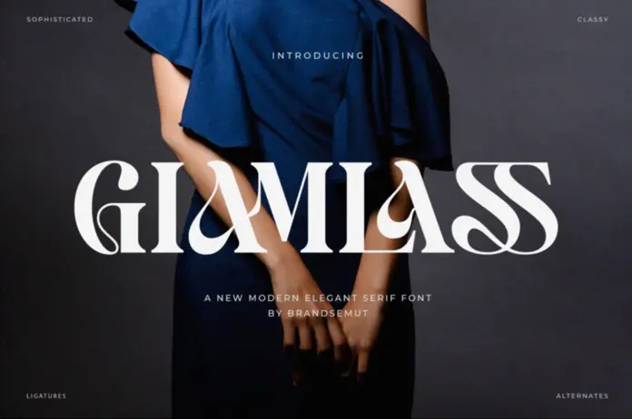 Giamlass — елегантний шрифт із засічками, що вирізняється вишуканим контрастом та унікальними лігатурами. Поєднуючи чисті лінії та плавні вигини, він ідеально підходить для заголовків, логотипів, брендингу, журналів, пакування та запрошень.