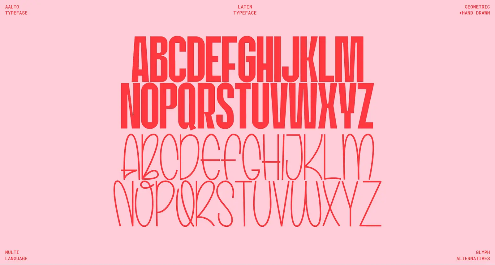 Натхненний легендарним фінським архітектором та дизайнером Алваром Аалто, цей шрифт відображає його нестаріючую естетику та новаторський дух. Поєднання органічних форм і чітких ліній робить його ідеальним як для друку, так і для цифрових носіїв.