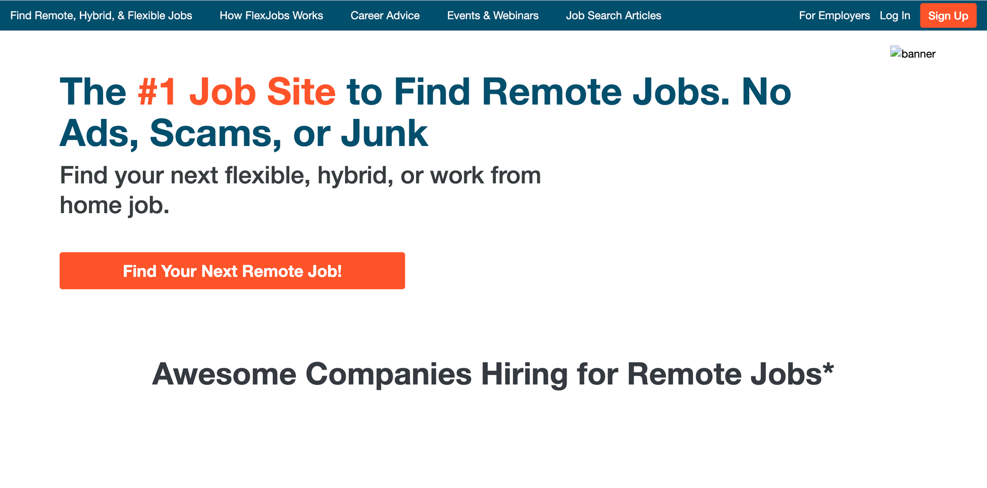 FlexJobs – платформа пропонує віддалені позиції з проєктною зайнятістю. Всі вакансії ретельно перевіряються на правдивість, що знижує ризик натрапити на шахраїв. Доступ до платформи є платним, що забезпечує високу якість і надійність роботодавців.