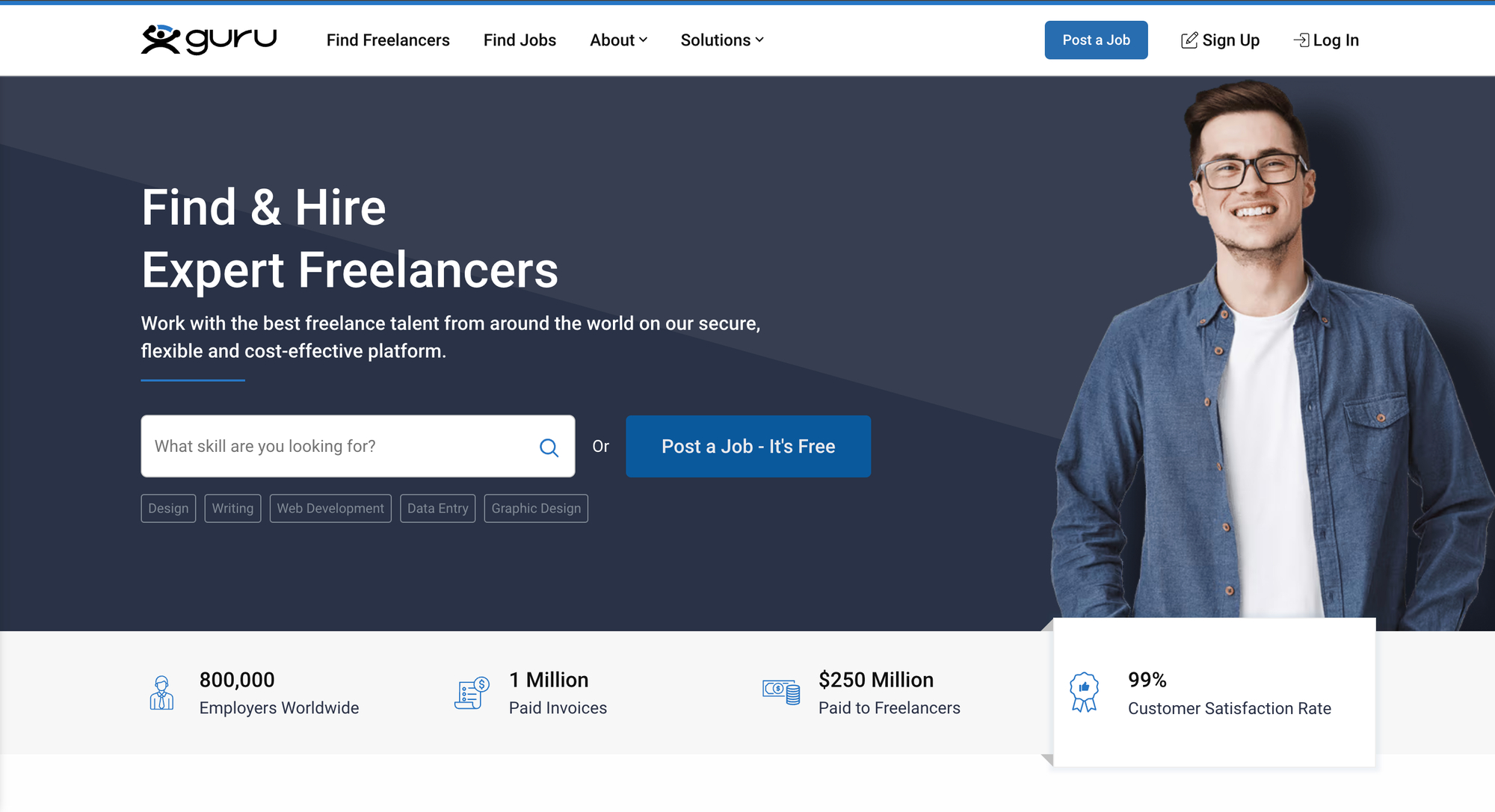 Guru – ще одна платформа для фрілансерів, яка пропонує безпечні платежі через систему SafePay. Користувачі можуть створювати профілі, публікувати свої послуги та отримувати замовлення від компаній з усього світу.