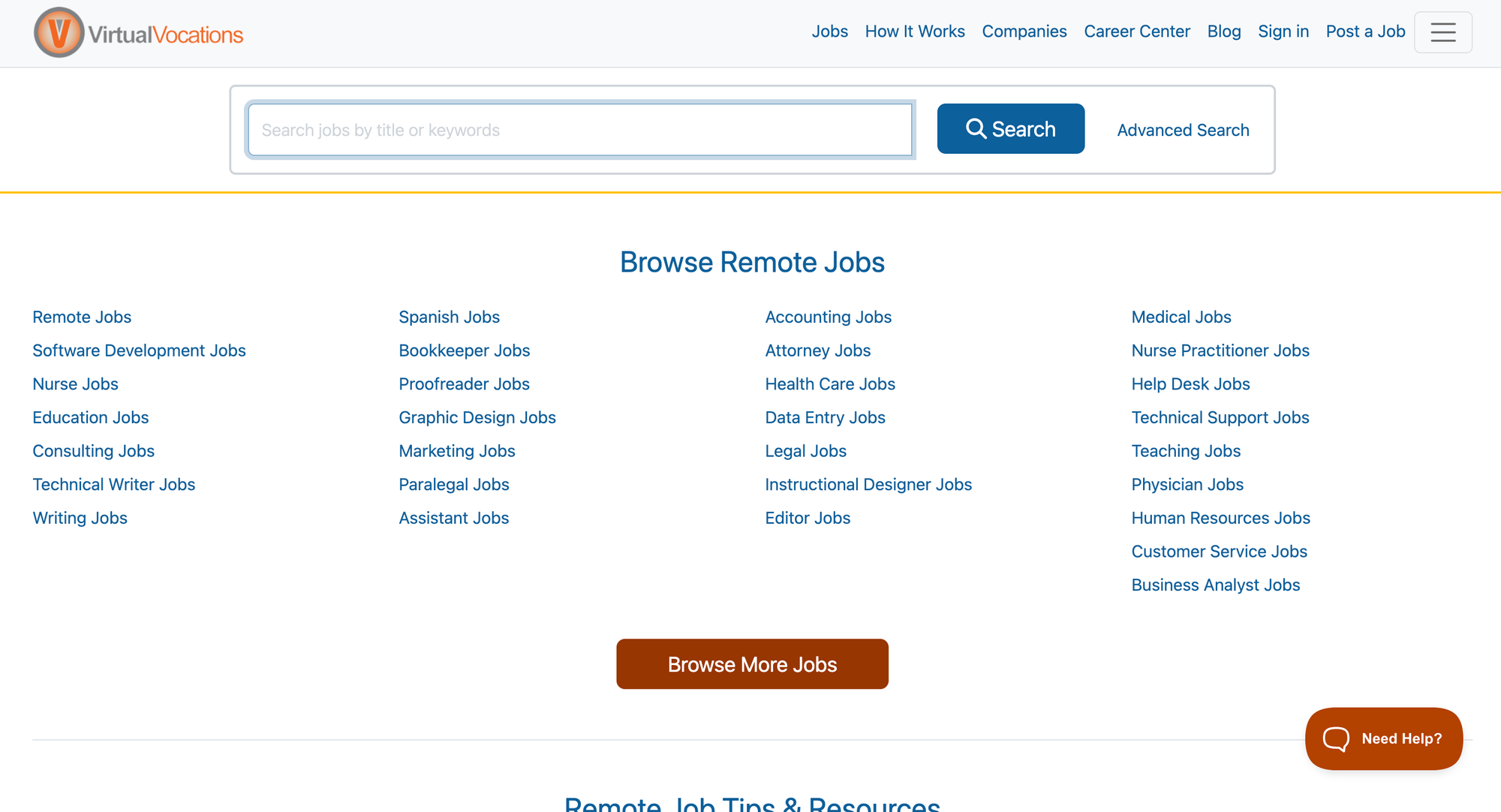 VirtualVocations – платформа допомагає знайти віддалену роботу в різних сферах. Сайт працює за підпискою, має фільтри за категоріями та рівнем досвіду.