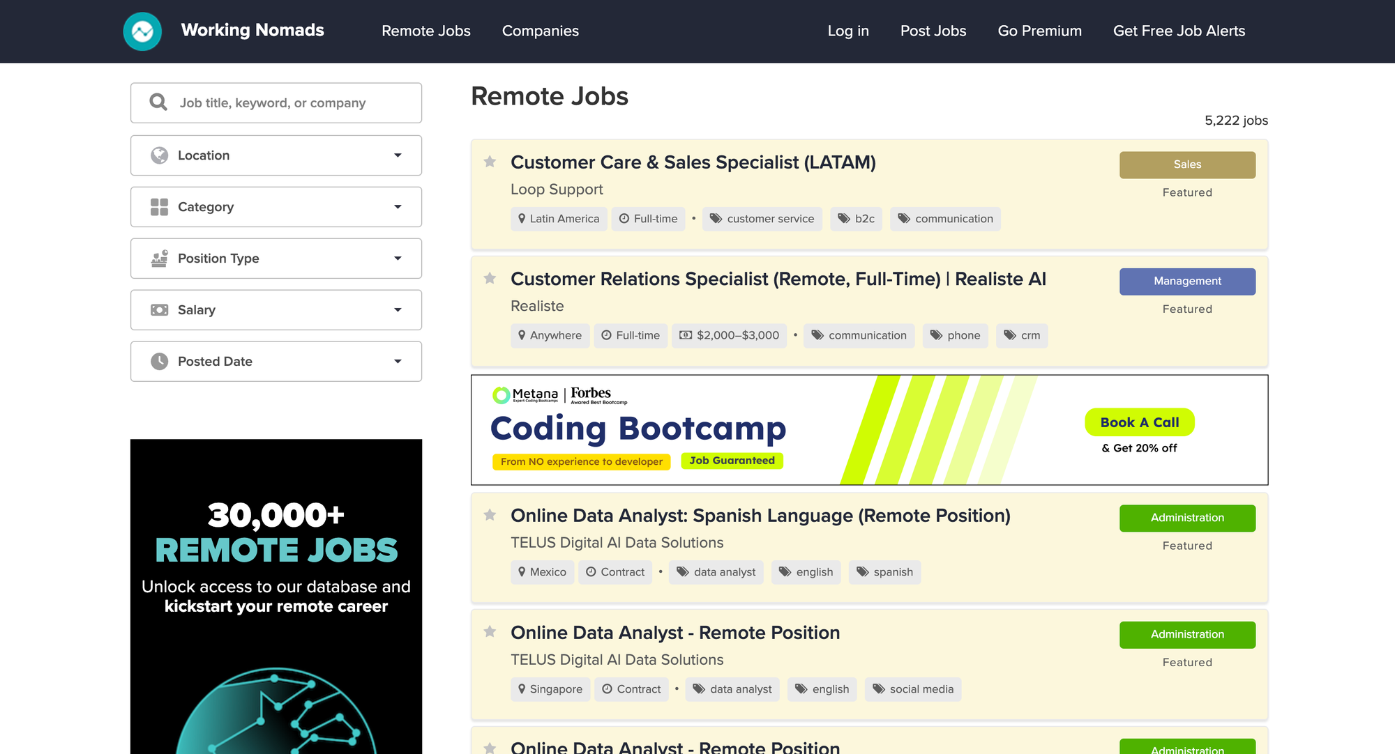 WorkingNomads – сайт для цифрових кочівників, який пропонує віддалені вакансії у сфері дизайну, маркетингу та IT.