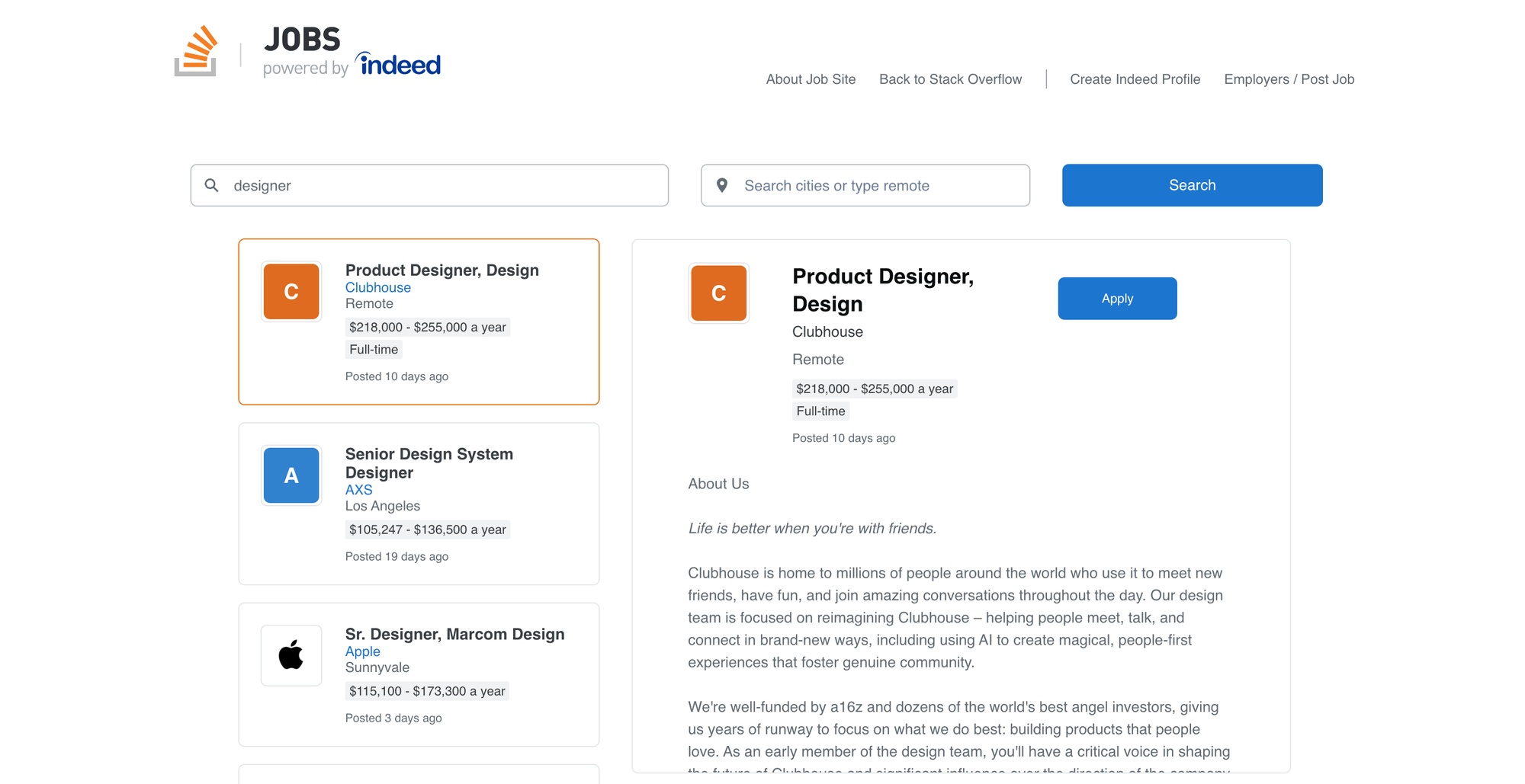 Stack Overflow Jobs допомагає розробникам знайти роботу у перевірених технологічних компаніях. Окрім вакансій, платформа дозволяє оцінити культуру компаній завдяки відгукам та переглянути стек технологій, з якими працює потенційний роботодавець.