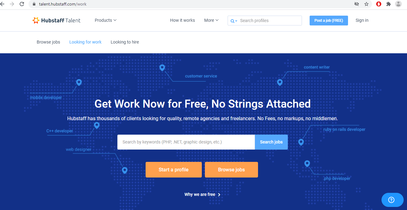 Talent.Hubstaff спеціалізується на віддаленій роботі. Платформа безкоштовна для шукачів і дозволяє напряму взаємодіяти з роботодавцями. Усі вакансії ретельно відбираються, що підвищує їхню якість і релевантність.