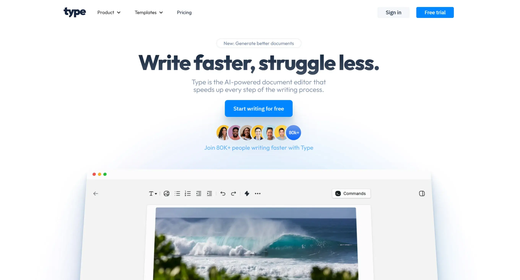 Type AI — це інструмент на основі штучного інтелекту, що допоможе створювати тексти без залучення копірайтерів та редакторів. Це чудовий варіант, якщо ви працюєте на фрилансі або у вашій компанії немає копірайтера для виконання цих завдань. Type AI здатен генерувати тексти з нуля за заданим промтом, переписувати готові варіанти, покращувати граматику, синтаксис або тон повідомлення.