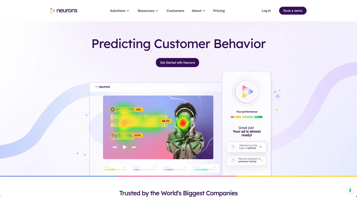 Neurons CoPilot - AI-платформа, яка допомагає креативним командам розробляти ефективні рекламні кампанії. Вона прогнозує реакцію клієнтів та оптимізує візуал з урахуванням цих прогнозів. Крім того, дизайнери можуть інтегрувати Neurons AI у процес проєктування, щоб тестувати та оптимізувати графіку для своїх проєктів.