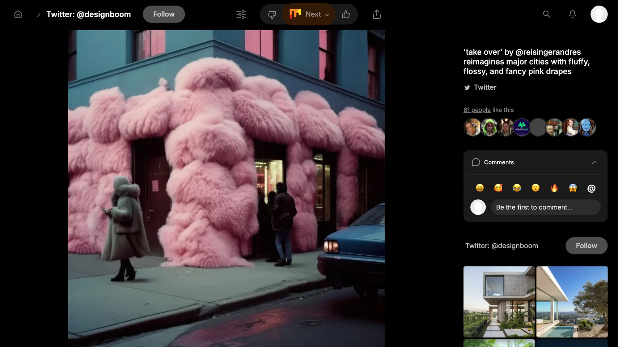 Щобільше, ви можете додавати елементи, які були збережені іншими користувачами на платформі, до власних кластерів. Або ж, якщо вам цікаві лише деякі з них, стежте за ними, не додаючи до власного акаунту. Cosmos відрізняється від Pinterest як раз таки тим, що тут ви слідкуєте не за людьми, а за вподобаними кластерами. Таким чином, Cosmos створює унікальну спільноту, яка об'єднує людей з подібними інтересами.