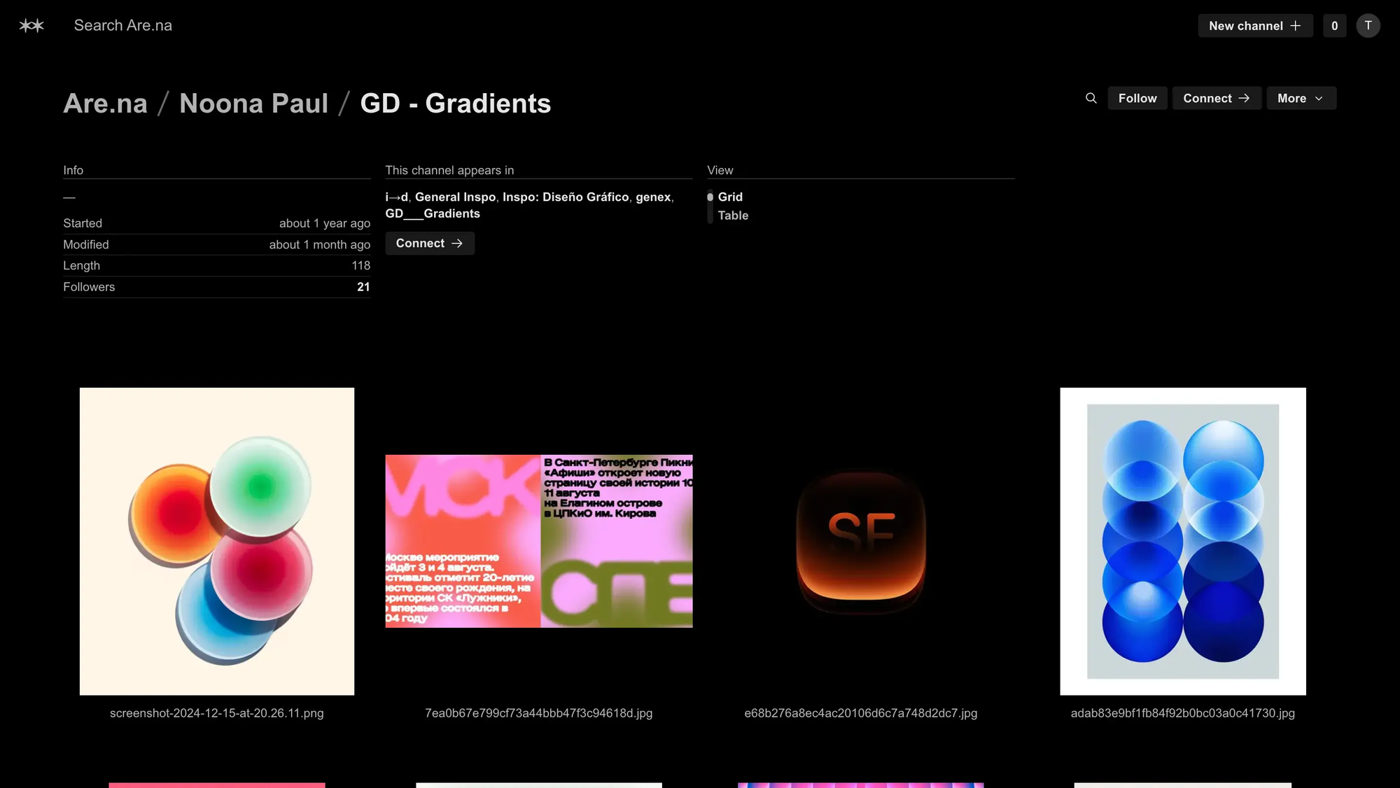 Are.na – мінімалістична платформа, без реклами, яка дозволяє зберігати та впорядковувати контент на мудбордах. Вільно створюйте як приватні, так і публічні дошки та колективно наповнювати проєкти ідеями. На відміну від Pinterest, Are.na дозволяє зберігати зображення, відео, текстові матеріали, посилання та інші файли. Також є інструменти групування та організації, які дозволяють легко знаходити та структурувати референси для подальшого використання.