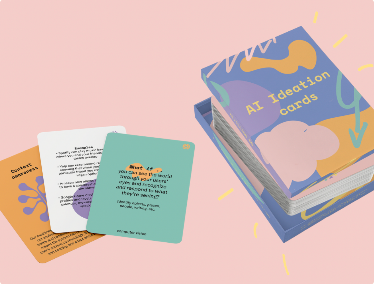 Колода карток AI Ideation Card Deck — цінний інструмент, призначений для допомоги дизайнерам і менеджерам у використанні потенціалу технологій AI для дизайнерської, користувацької та бізнес-цінності. Завдяки барвистим підказкам колода пропонує практичний ресурс для мозкового штурму, дозволяючи користувачам досліджувати різноманітні можливості штучного інтелекту, які наразі доступні.