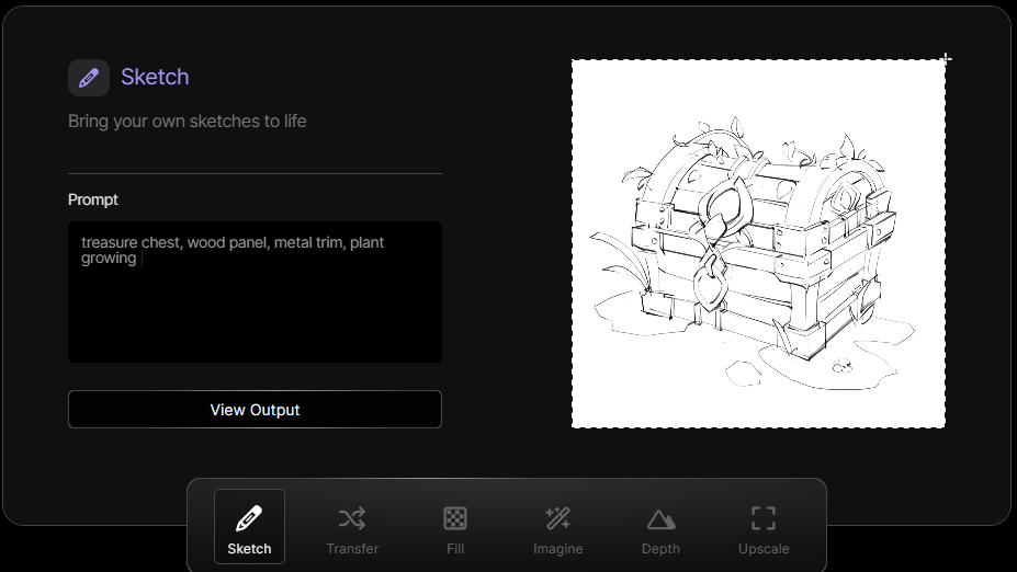- Функція «Sketch»: перетворює фотографії на ескізи, які можна надалі редагувати. Завантажте фото та виберіть потрібний стиль ескізу.