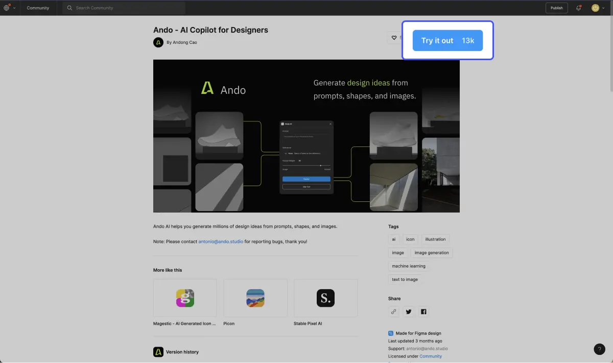 - Зручна інтеграція: за допомогою вбудованого Figma плагіну, Ando легко інтегрується у вашу робочу екосистему, зменшуючи необхідність перемикатися між платформами.