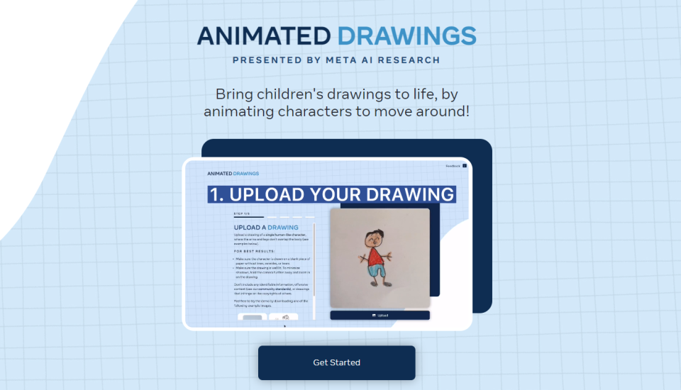 Animated Drawings — це інструмент на основі штучного інтелекту, представлений компанією META AI Research, який дозволяє користувачам оживляти малюнки, анімуючи персонажів та додаючи кожному штриху або каракулі руху. Інструмент створює анімацію на основі вмісту наданих малюнків, проставляючи основні, рухомі точки по краях малюнку, інструмент відтворює притаманний тому чи іншому об’єкту рух. За допомогою інструменту ви можете відмалювати необхідні ілюстрації та анімувати їх у додатку. Зауважте, що інструмент використовує JavaScript, тому обов’язково ввімкніть його перед запуском програми.
