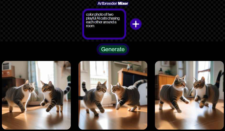 Artbreeder Mixer — це універсальний інструмент, який дозволяє змішувати зображення та тексти для створення унікальних артів. Функціонал програми дозволяє додавати текстові підписи, логотипи, наклейки та змішувати фото, додаючи деталі іншого зображення до оригінального. Користувачі також можуть регулювати такі параметри змішування, як непрозорість, положення, розмір і стиль.