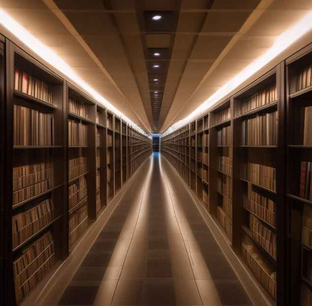 Коридор нескінченної книжкової крамниці. Це зображення було створено шляхом поєднання зображення книжкового магазину з зображенням коридору. Результатом є мрійливий та загадковий арт.