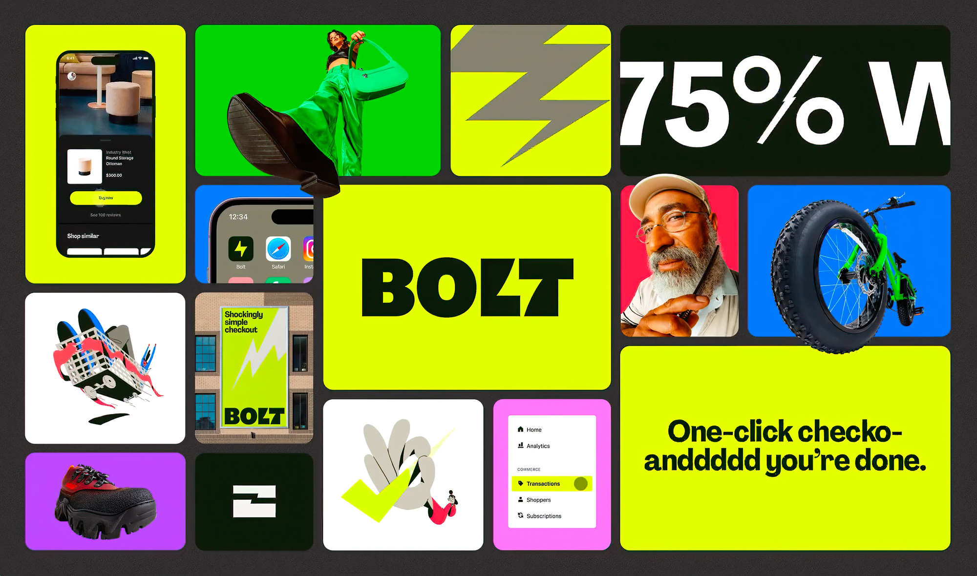 Bolt також використовував бенто бокс, щоб охопити всі пропозиції й функції на одному екрані, а потім перевести їх до відеоплиток у кінці. Bolt використав більш узгоджений візуальний підхід до кожної плитки, щоб полегшити сканування вмісту. Це чудовий спосіб інформування, а також змотивувати переглянути більше в кінці!