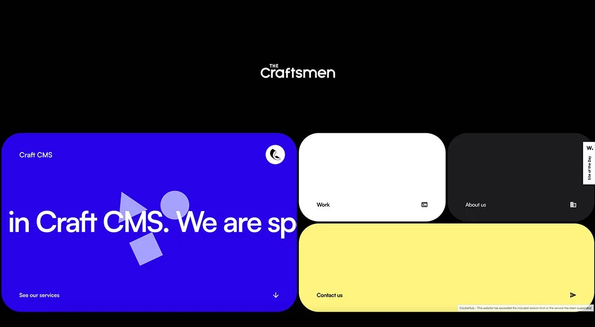 Сайт The Craftsmen майже повністю побудований на бенто боксах. І попри це, його дуже приємно скролити, відкривати меню, і навіть заповнювати контактну форму внизу сторінки!. Це майже змусило подумати, що «мислити всередині коробки» не так вже й погано.
