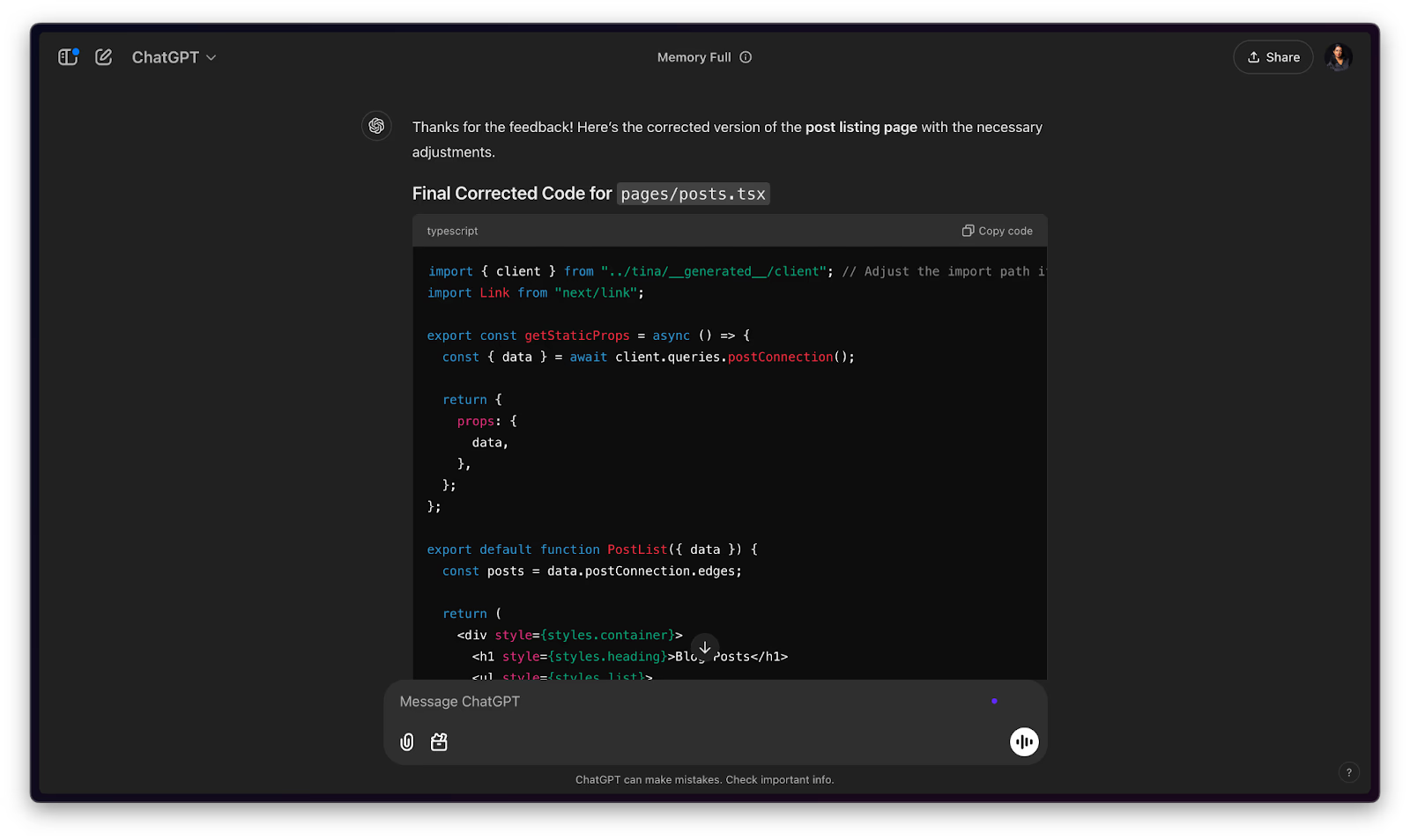 Claude значно краще справляється з великими кодовими базами та довгими файлами. Це можливо завдяки більшому контекстному вікну. Якщо вам потрібно завантажити цілий файл і попросити знайти в ньому системну помилку або провести рефакторинг — Claude тримає контекст надійніше. Його пояснення коду також часто детальніші та технічно точніші.