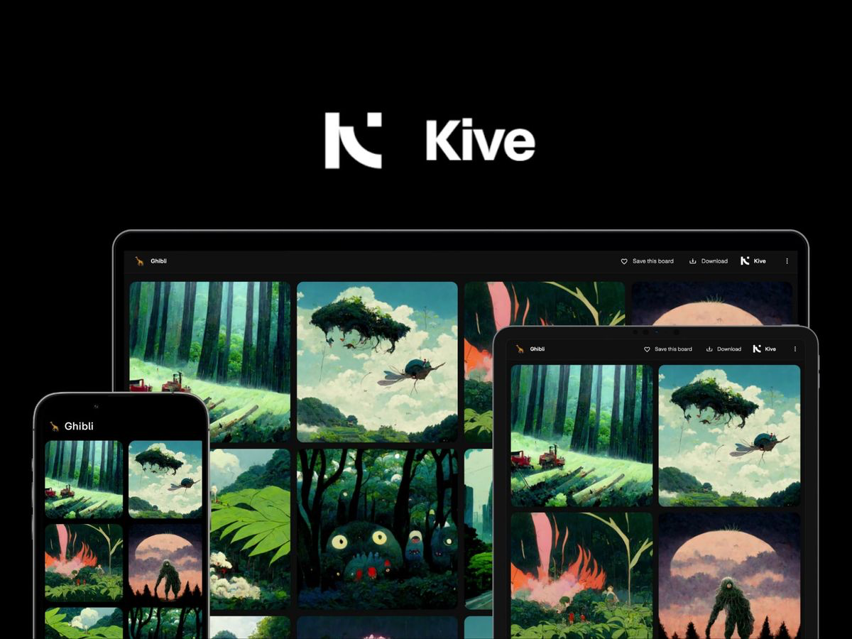 Kive — це інструмент для організації графічних елементів та зображень у візуальні бібліотеки та створення тематичних мудбордів. Завдяки вбудованому ШІ користувачі зможуть легко управляти об’єктами та шукати візуальний контент у бібліотеках. Зображення автоматично позначаються тегами, спрощуючи процес пошуку.